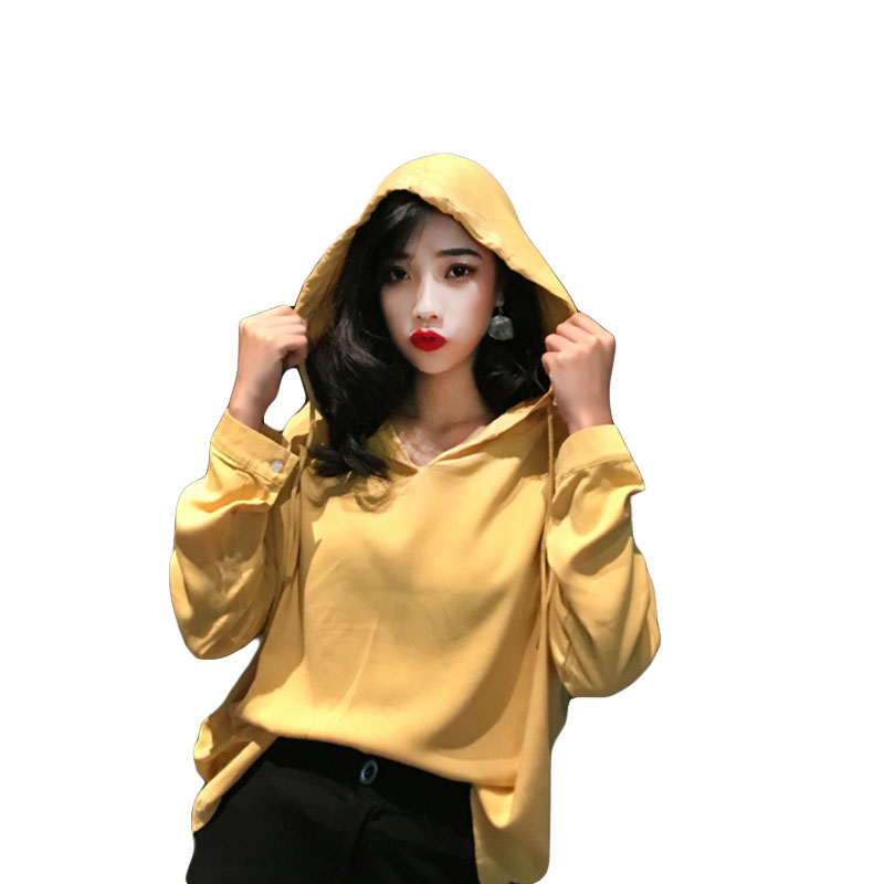 2018秋季韓版新款寬松顯瘦連帽抽繩慵懶港味套頭衛衣襯衫女上衣潮