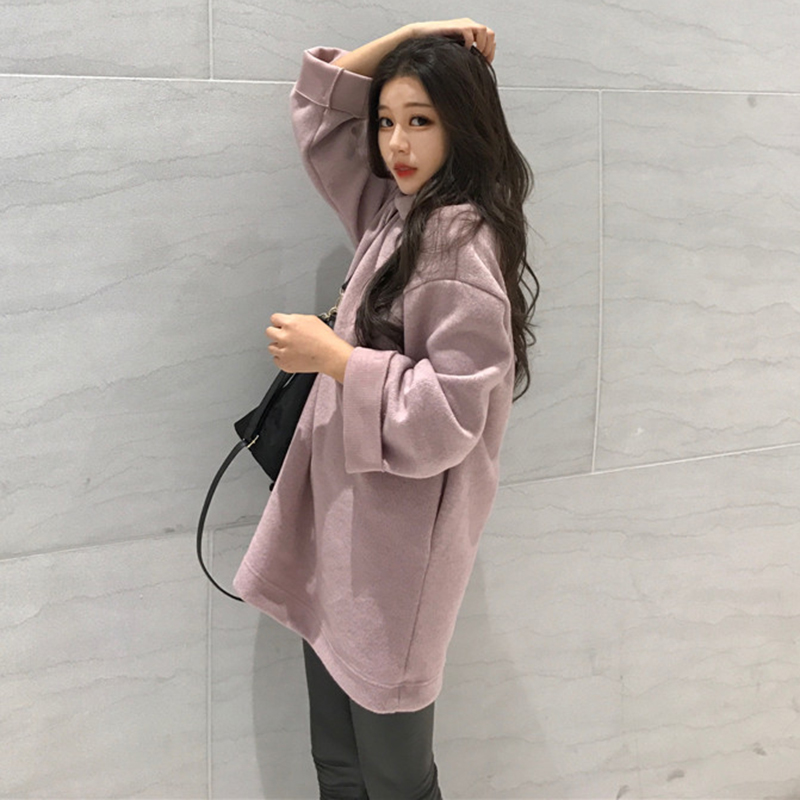 / 慵懶風高領加絨衛衣裙女秋冬裝2018新款韓版寬松字母刺繡連衣裙子