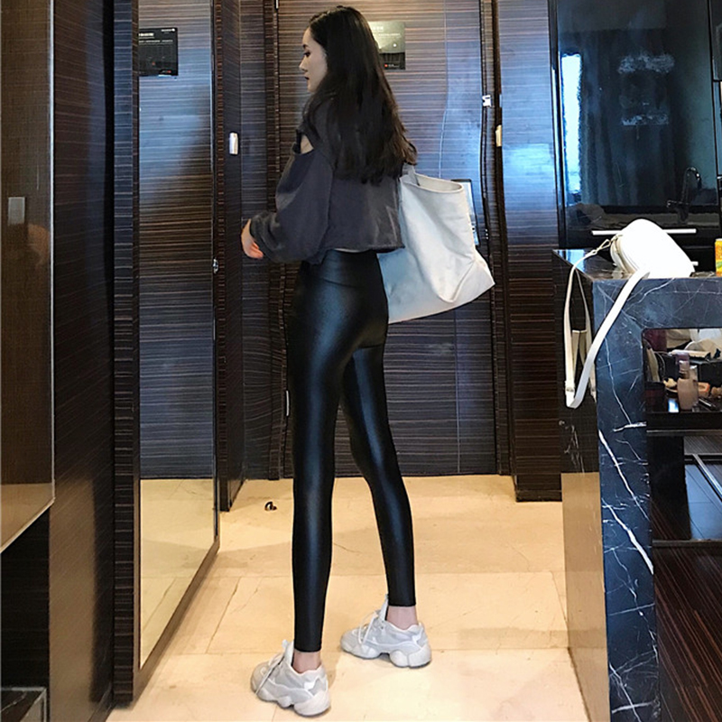 高腰外穿打底褲女冬裝2018新款韓版氣質修身PU皮褲黑色顯瘦長褲子