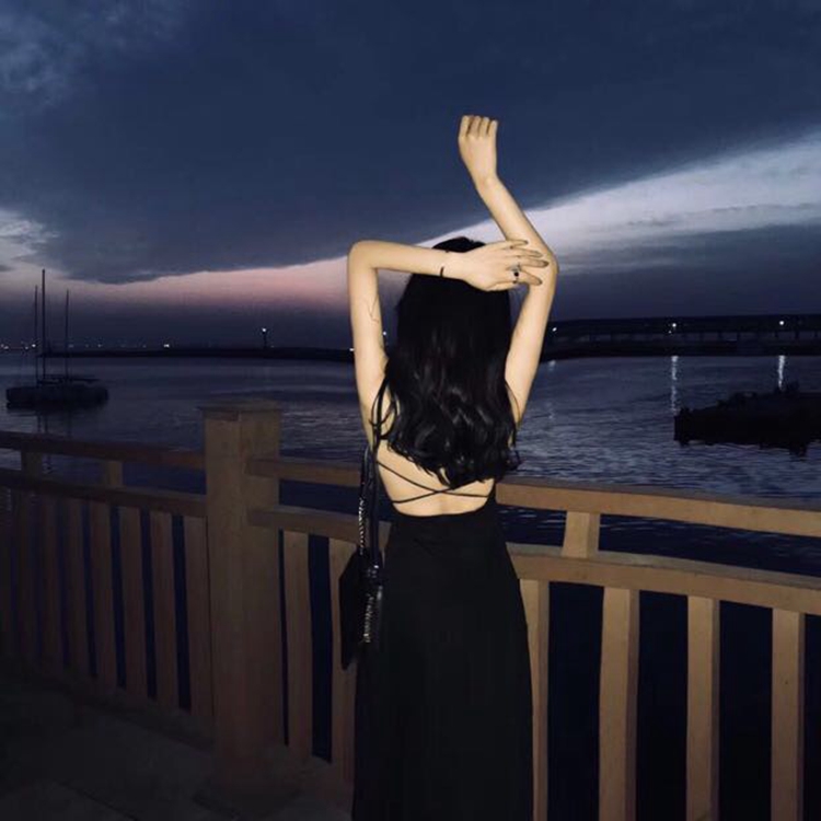 復古韓國chic風氣質黑色連衣裙女夏季度假長裙子露背小心機吊帶裙