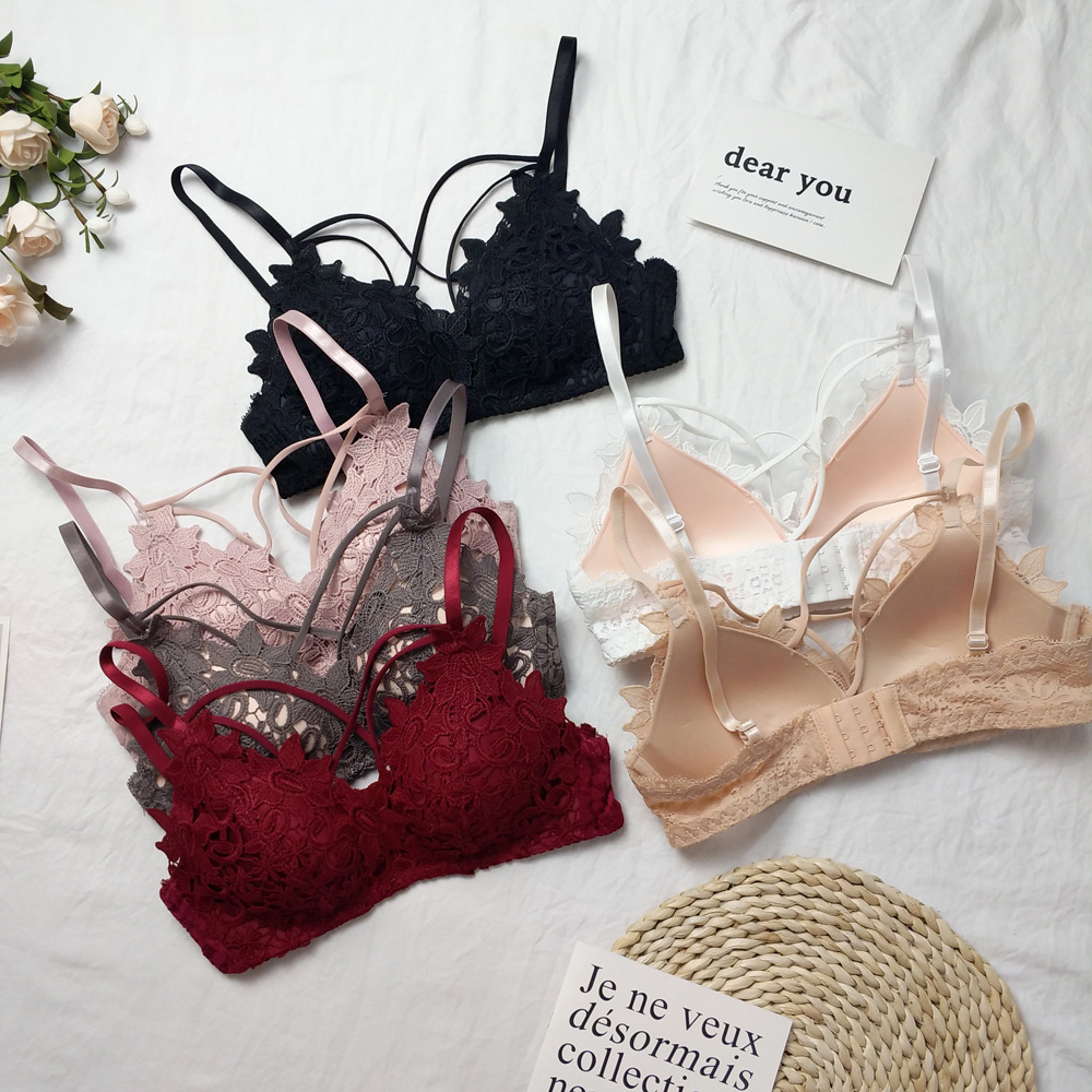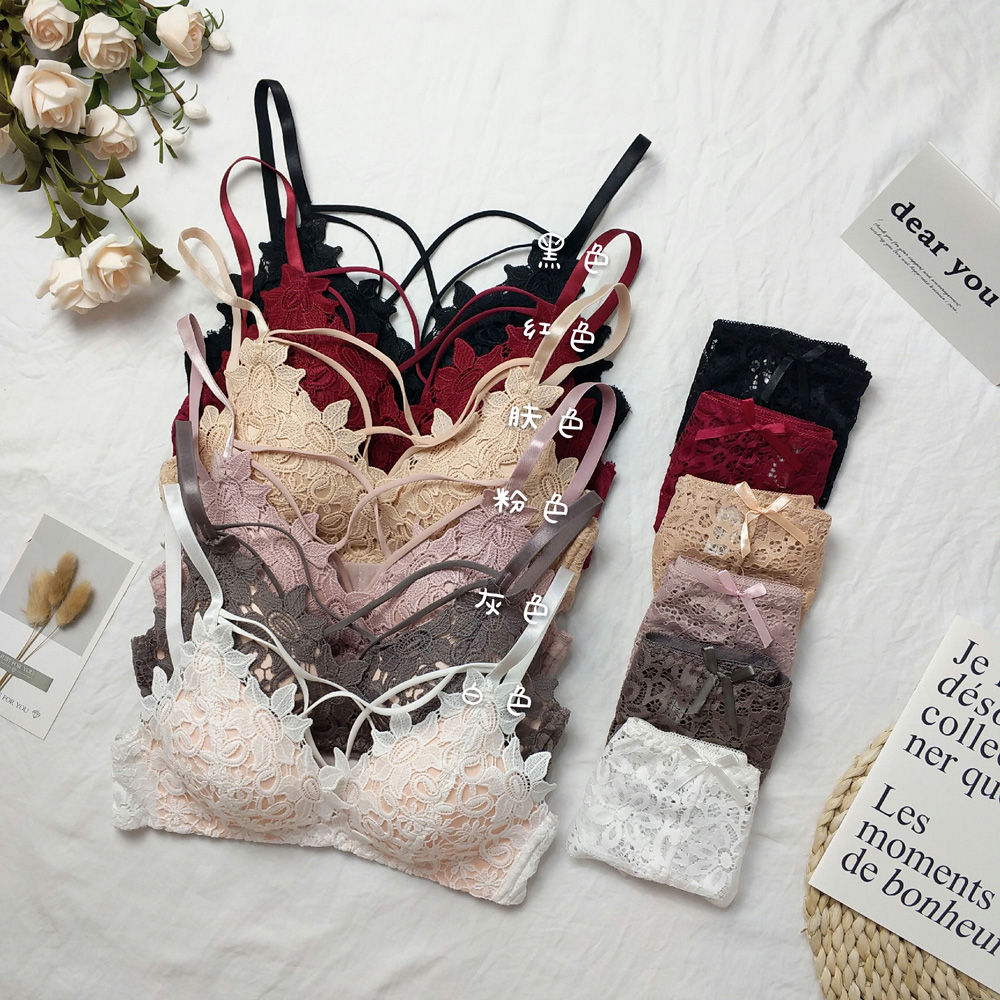 / 韓版秋季女裝性感蕾絲無鋼圈聚攏三角杯內衣學生文胸內褲時尚套裝
