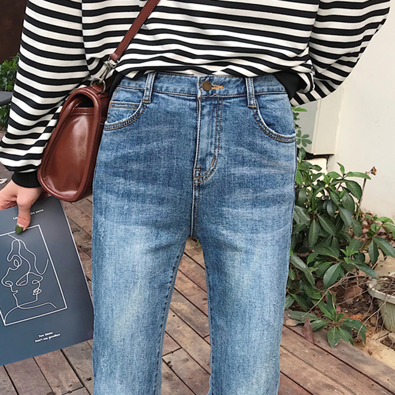 / 韓版不規則毛邊怪味牛仔褲女秋冬裝新款學生高腰顯瘦復古微喇褲子