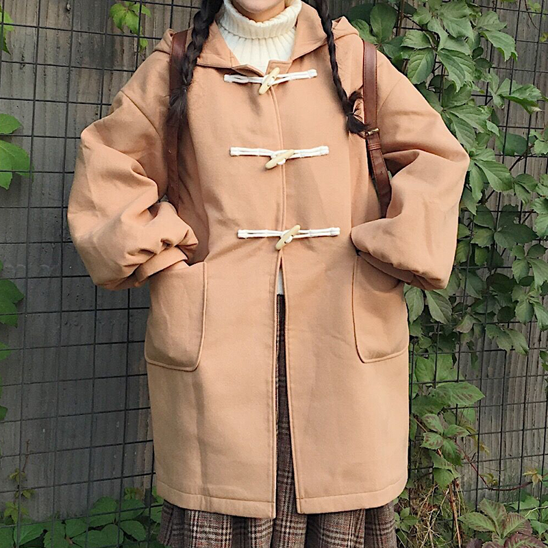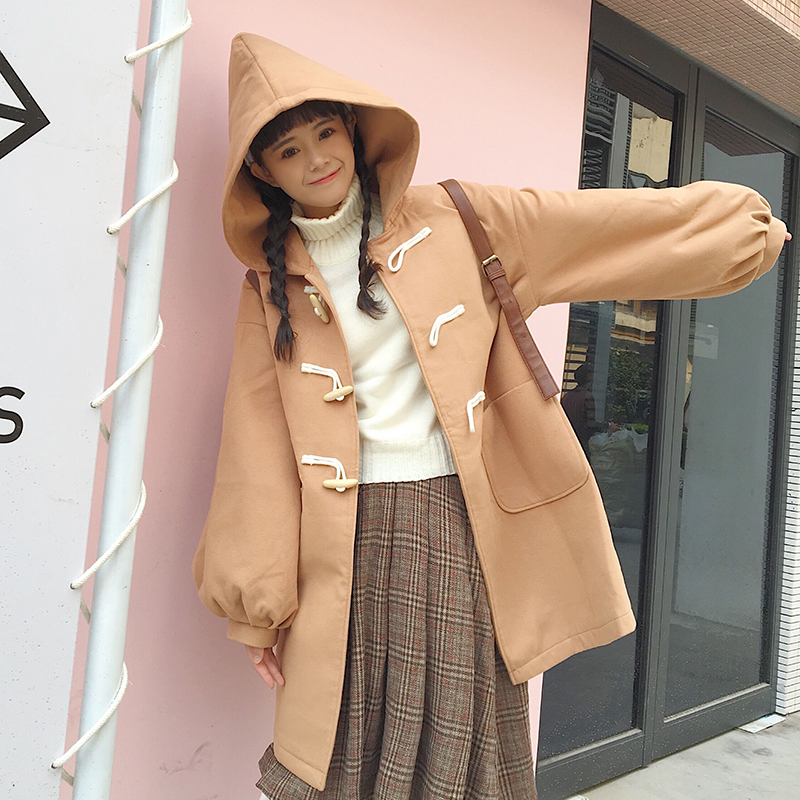 軟妹可愛燈籠長袖毛呢外套上衣秋裝女2018新款學生寬松中長款大衣