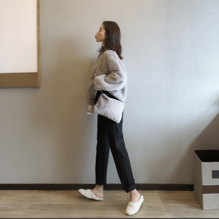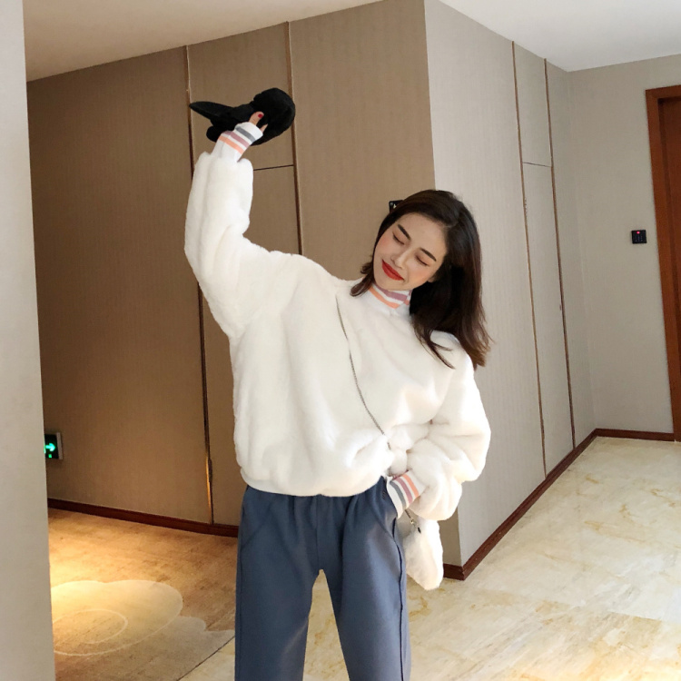/ 寬松毛絨加厚套頭衛衣女冬2018新款上衣外套+毛呢休閑褲呢子長褲