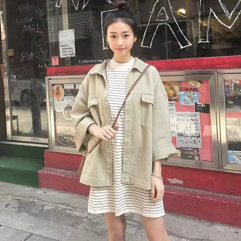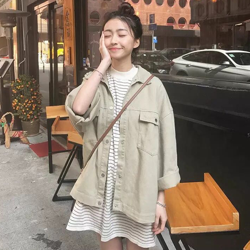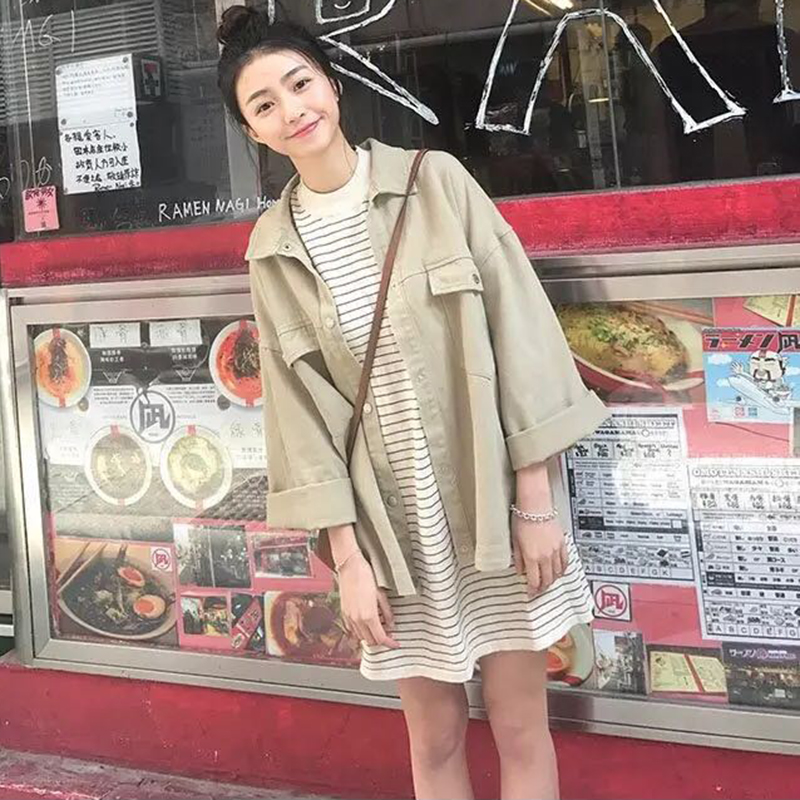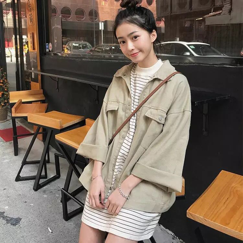 夾克女早秋新款女裝韓版寬松水洗做舊牛仔服喇叭袖休閑百搭薄外套