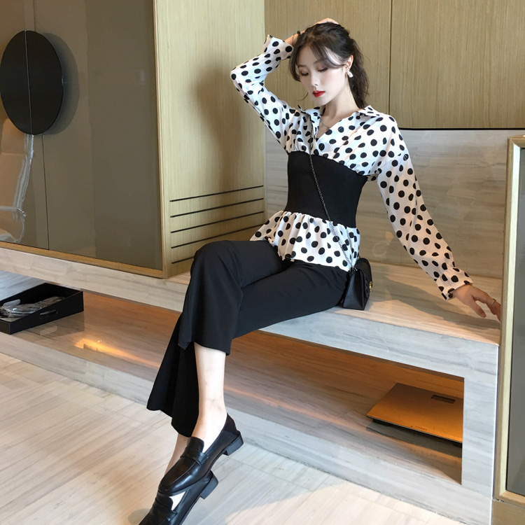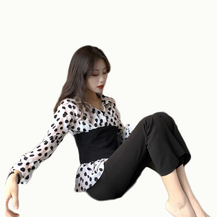 網紅chic慵懶風襯衣女2018新款波點襯衫女收腰雪紡顯瘦設計感上衣
