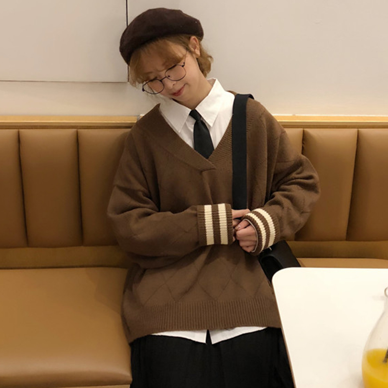 / 御姐套裝女秋冬新款韓版寬松V領毛衣針織衫外套白色長袖襯衫上衣