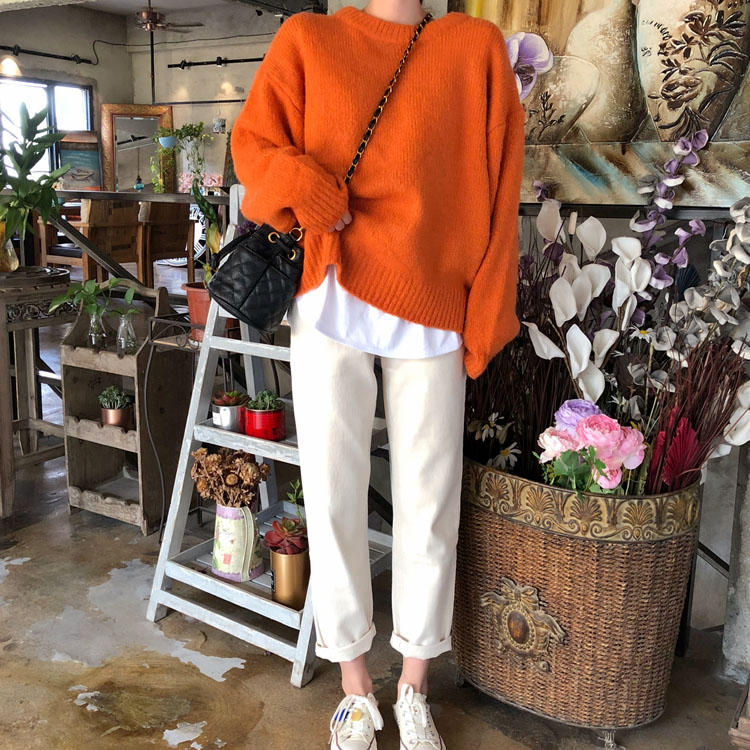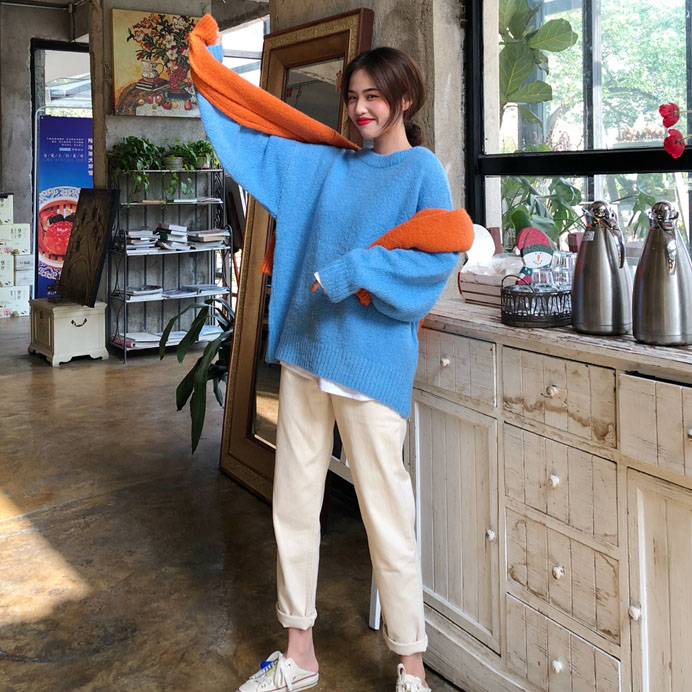 / 網紅款慵懶風套頭毛衣女2018新款秋寬松套頭加厚長袖中長款針織衫