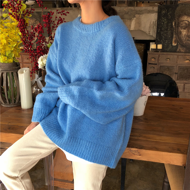 網紅款慵懶風套頭毛衣女2018新款秋寬松套頭加厚長袖中長款針織衫