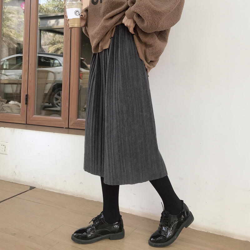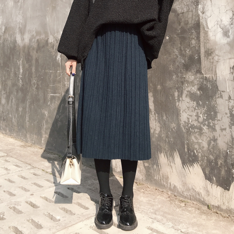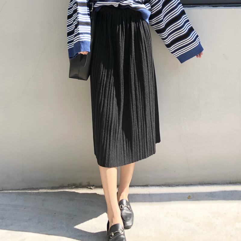 / 氣質高腰壓褶a字半身裙秋裝2018新款女復古顯瘦黑色百褶中長裙子