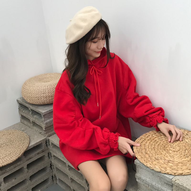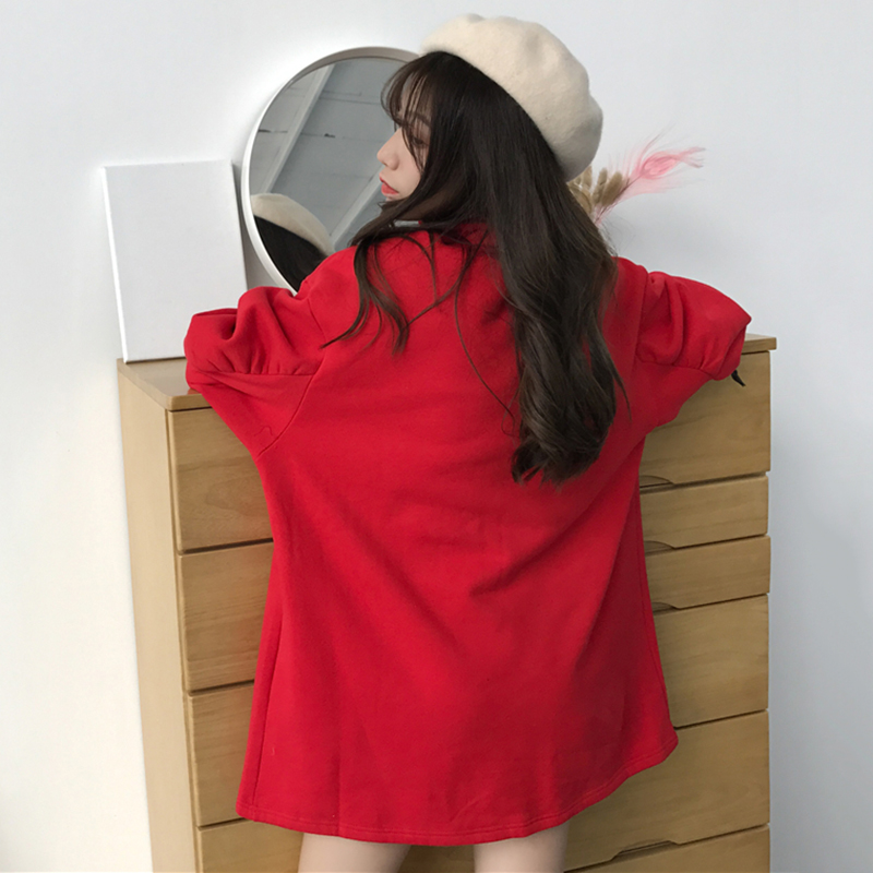/ 中長款立領系帶衛衣裙女秋冬裝2018新款韓版寬松泡泡長袖連衣裙子