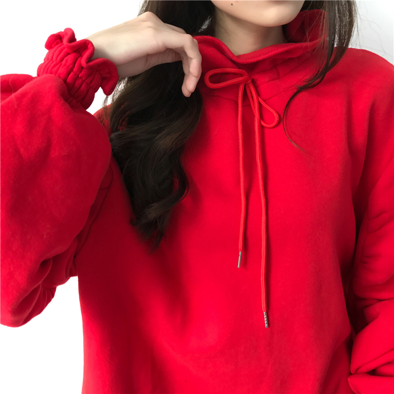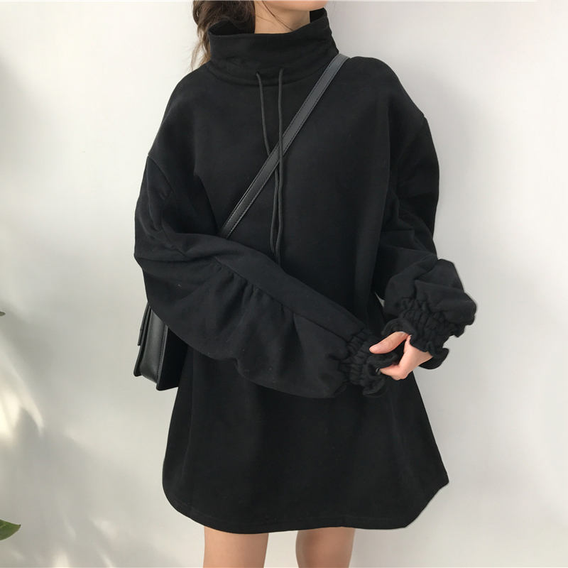 中長款立領系帶衛衣裙女秋冬裝2018新款韓版寬松泡泡長袖連衣裙子