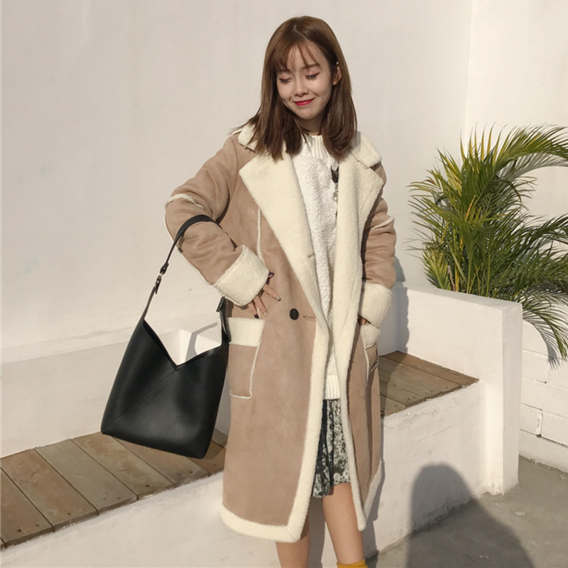 / 秋冬保暖羊羔毛中長款外套2018新款女裝復古慵懶寬松大衣長袖上衣