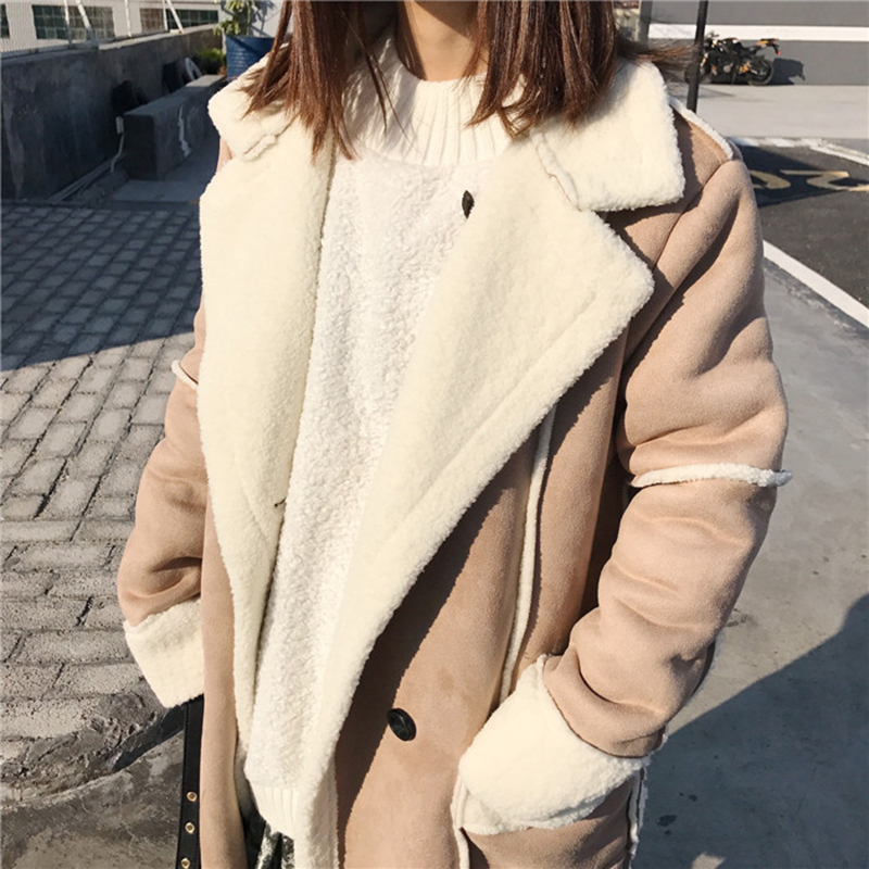 秋冬保暖羊羔毛中長款外套2018新款女裝復古慵懶寬松大衣長袖上衣