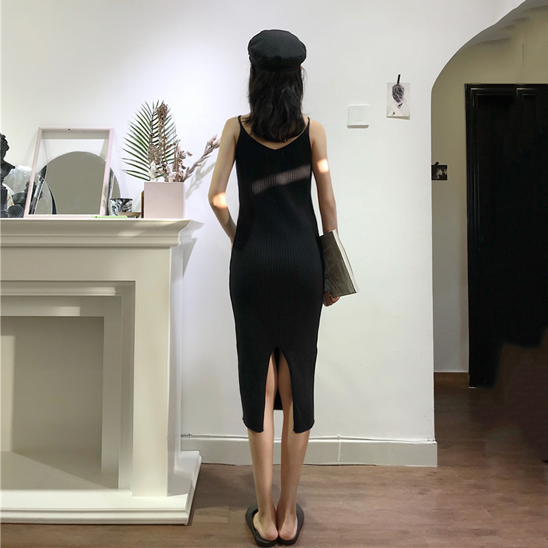 / 秋裝新款韓版港味小心機氣質修身顯瘦溫柔風針織吊帶打底連衣裙女