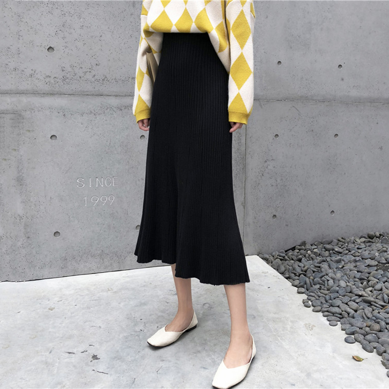 / 中長款A字半身裙女秋冬裝2018新款韓版氣質高腰顯瘦針織百褶裙子