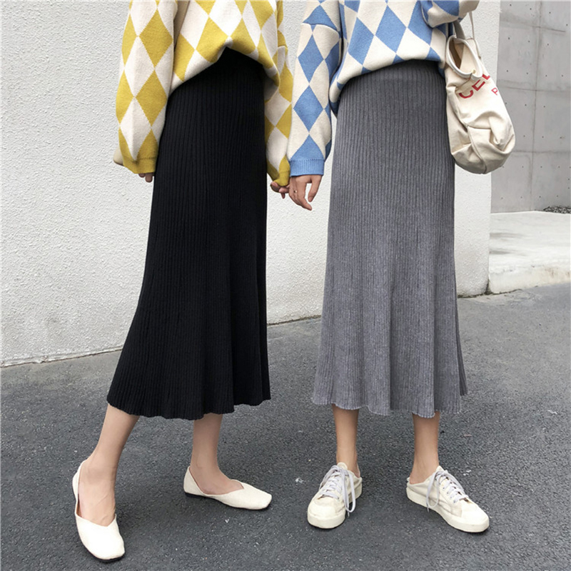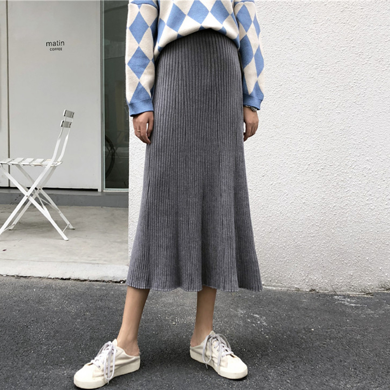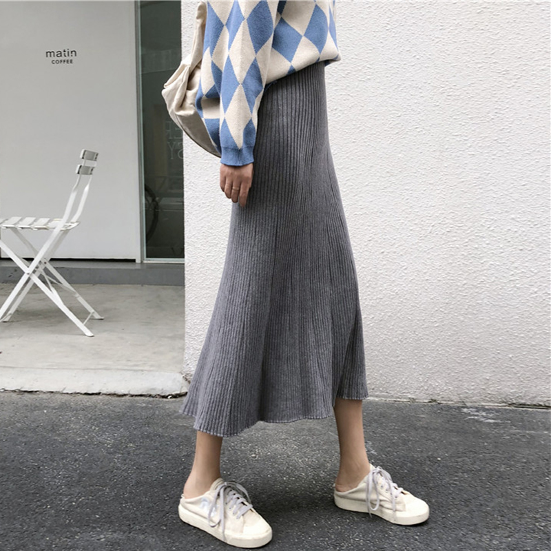 中長款A字半身裙女秋冬裝2018新款韓版氣質高腰顯瘦針織百褶裙子