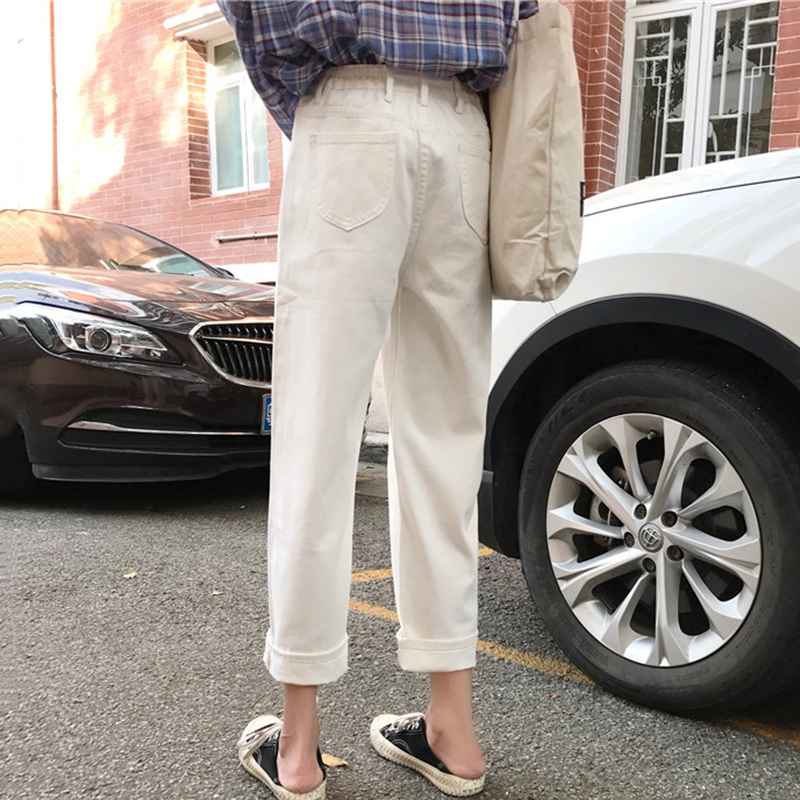 / 女裝新款復古高腰顯瘦寬松直筒褲女秋季學生韓版黑色九分牛仔褲子