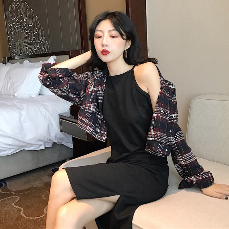 藏青格外套|黑色吊帶|灰格外套|灰色吊帶