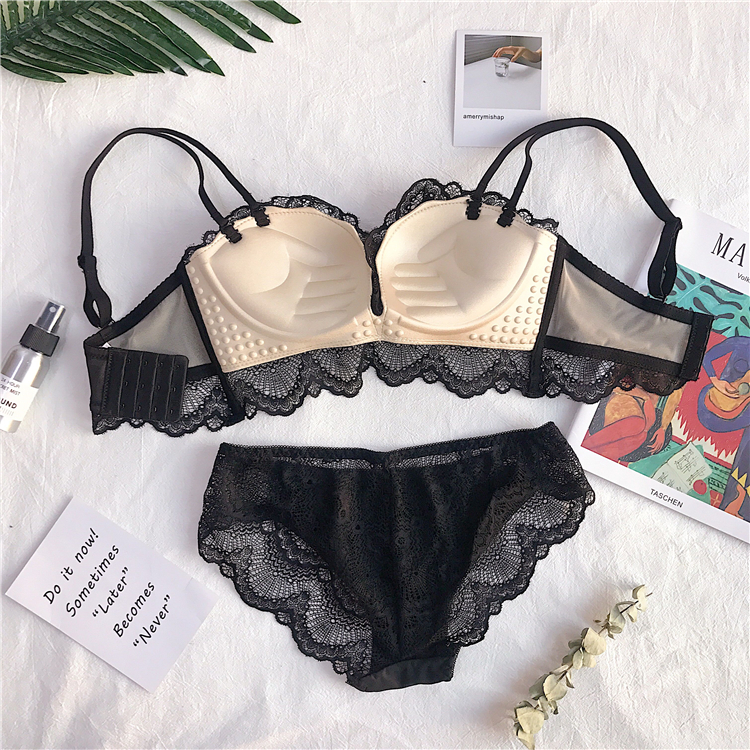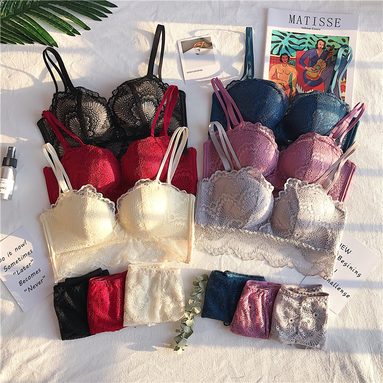 秋季新款復古韓國調整蕾絲聚攏文胸內衣無鋼圈套裝收副乳胸罩上托