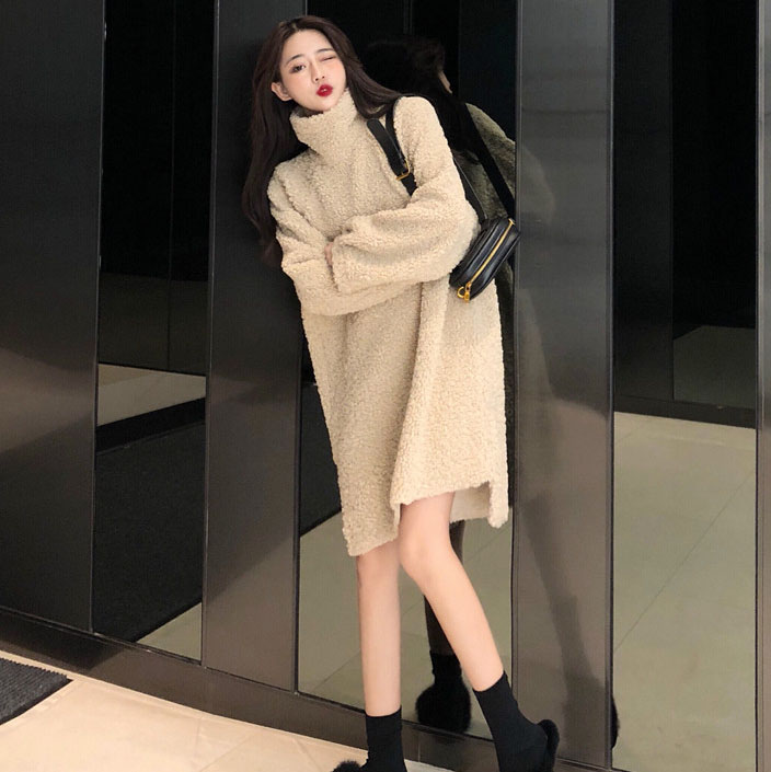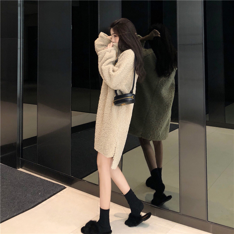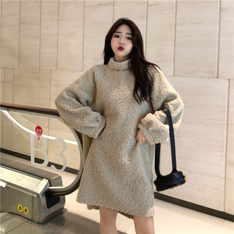 韓版百搭厚羊羔毛寬松套頭中長款衛衣女秋冬2018新款長袖外套上衣