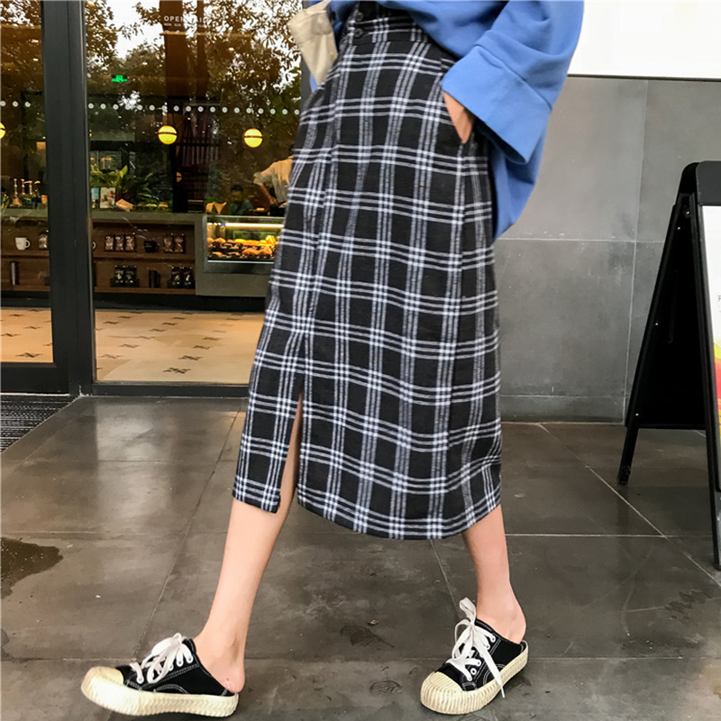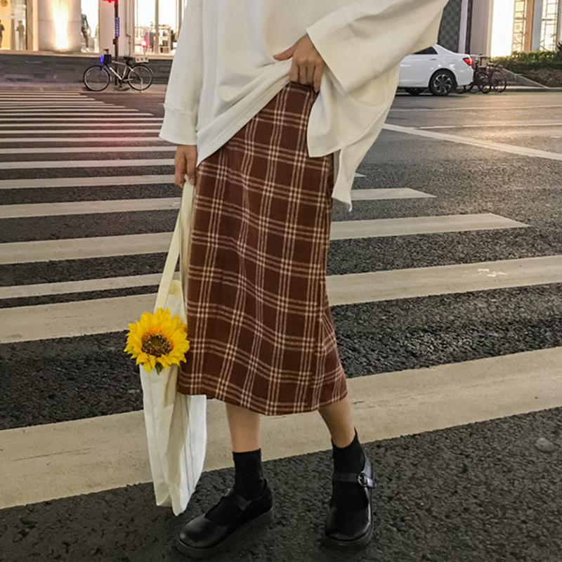 / 學生復古風高腰顯瘦格紋半身裙子女秋冬裝2018新款韓版時尚中長裙