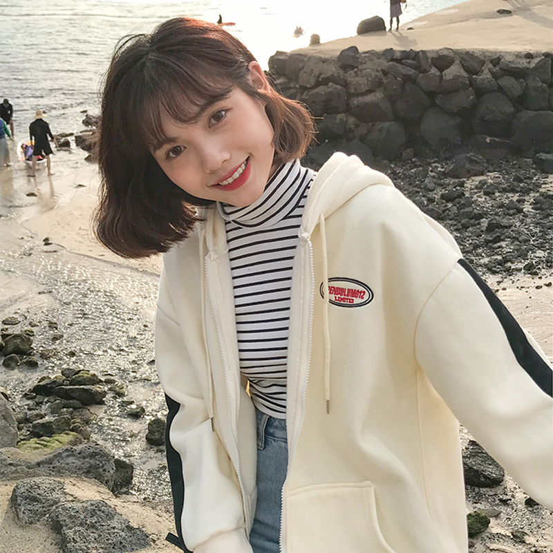 秋冬女裝2018新款加絨寬松連帽衛衣學生長袖外套時尚慵懶開衫上衣