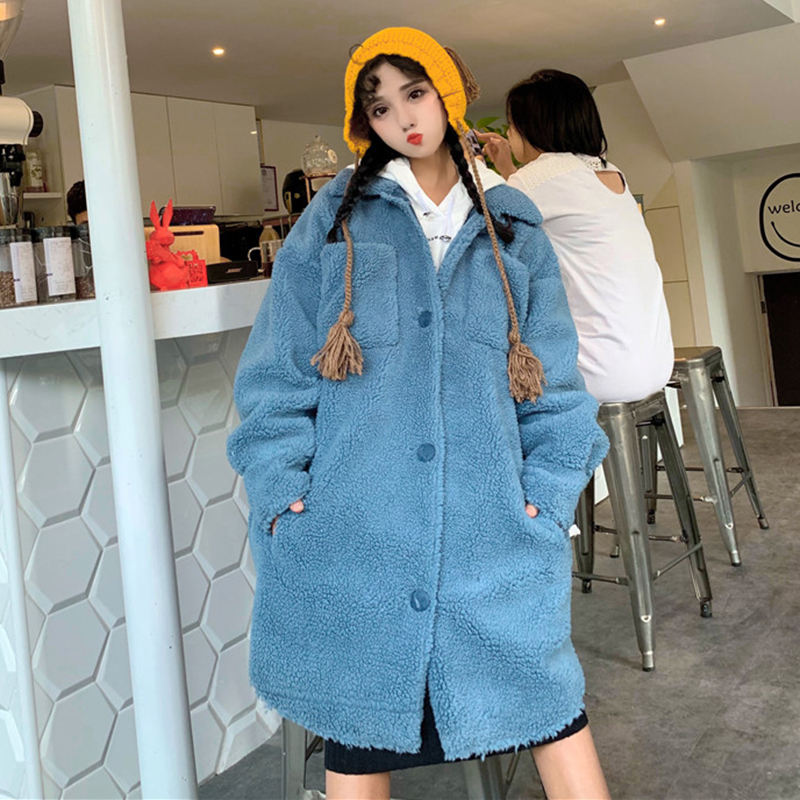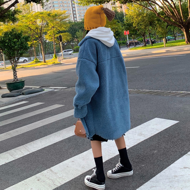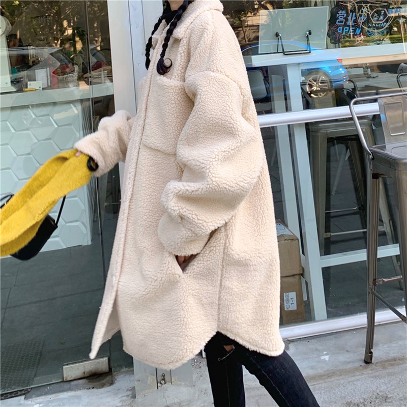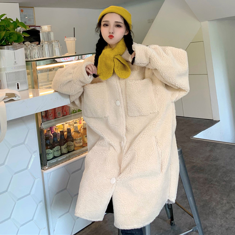 女冬裝2018新款韓版流行長袖大衣學生中長款寬松仿羊羔毛保暖外套