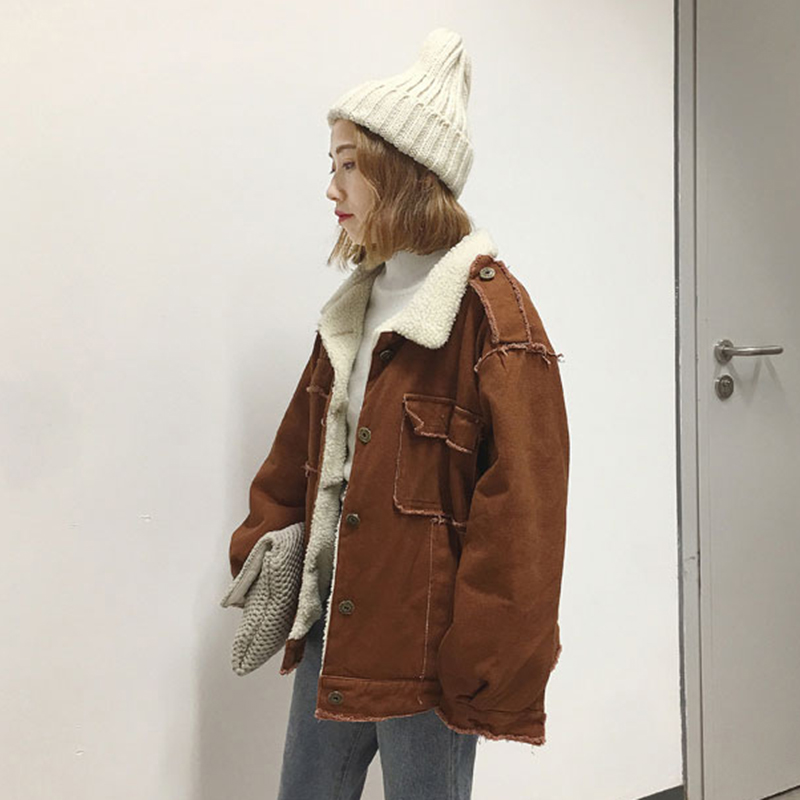 / 秋冬羊羔毛外套2018新款女裝復古港風毛邊工裝夾克寬松棉服上衣潮