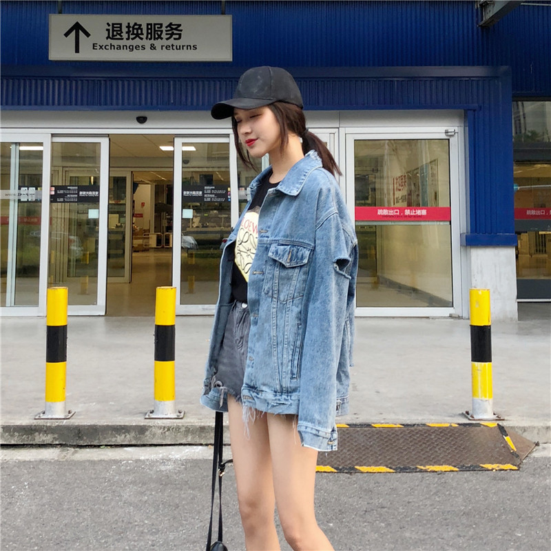 時尚復古秋裝女2018新款水洗寬松百搭oversize長袖顯瘦牛仔外套潮