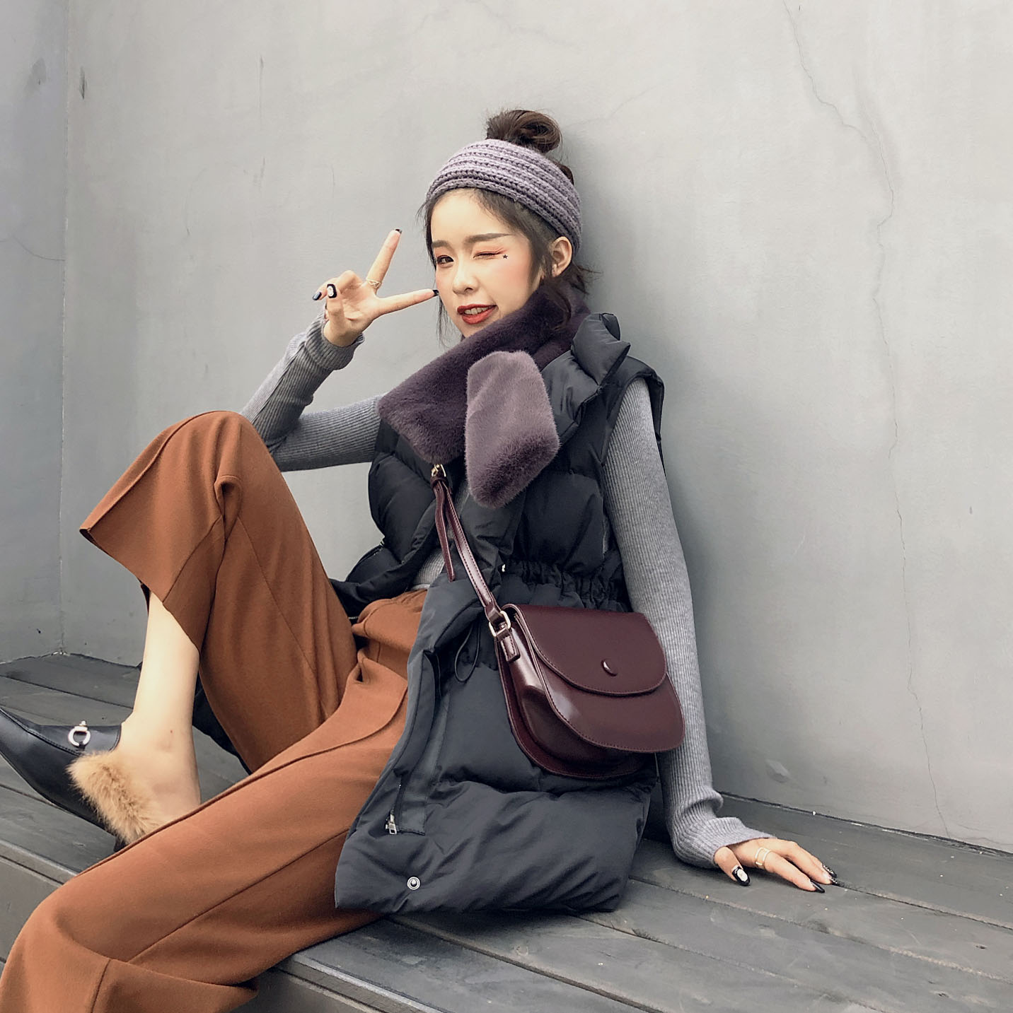 韓國外套冬裝女2018新款收腰中長款立領手塞棉服百搭寬松馬甲外套