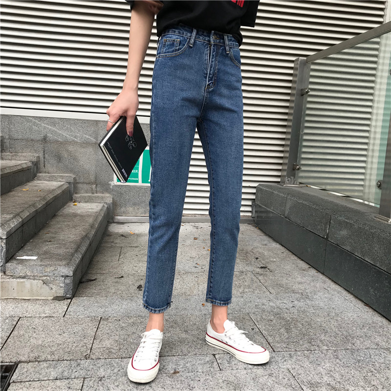 / 春季女裝新款韓版顯瘦百搭休閑九分褲學生高腰牛仔小腳褲哈倫褲潮