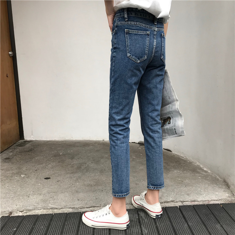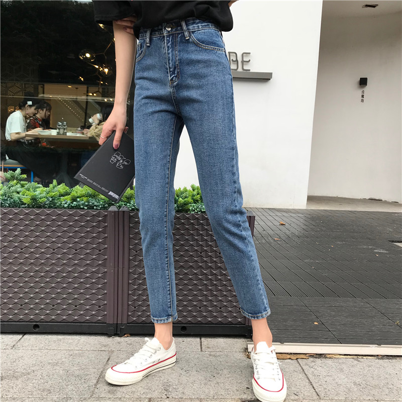 春季女裝新款韓版顯瘦百搭休閑九分褲學生高腰牛仔小腳褲哈倫褲潮