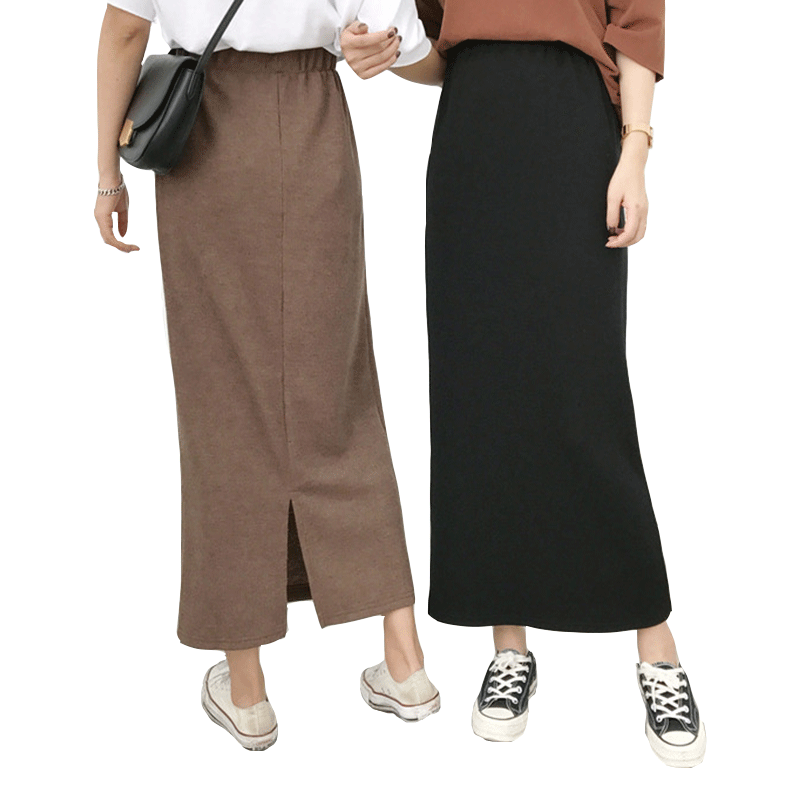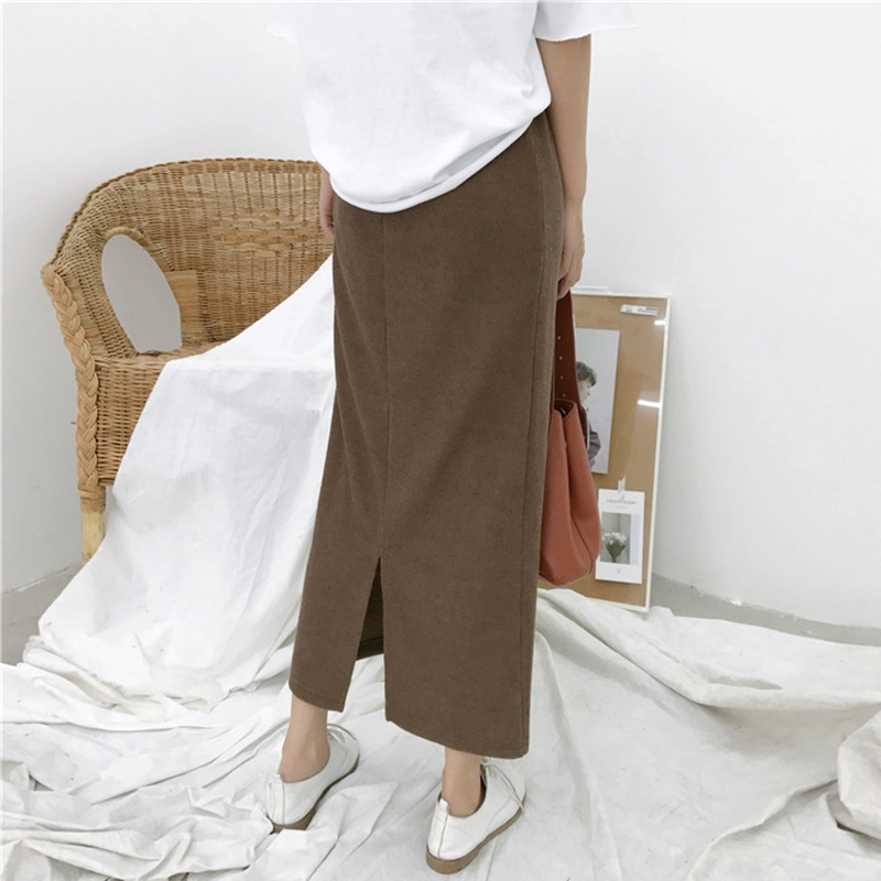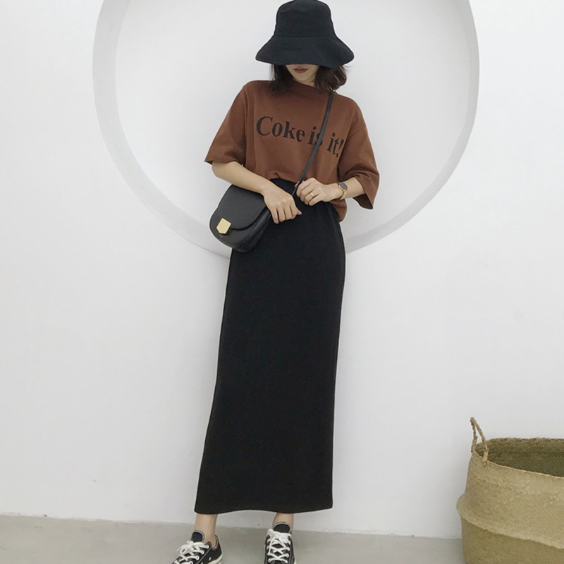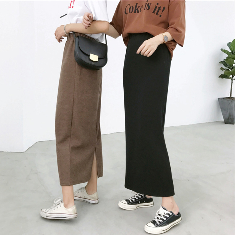 / 長裙女早秋新款韓版女裝寬松高腰開叉黑色半身裙學生顯瘦包臀裙子