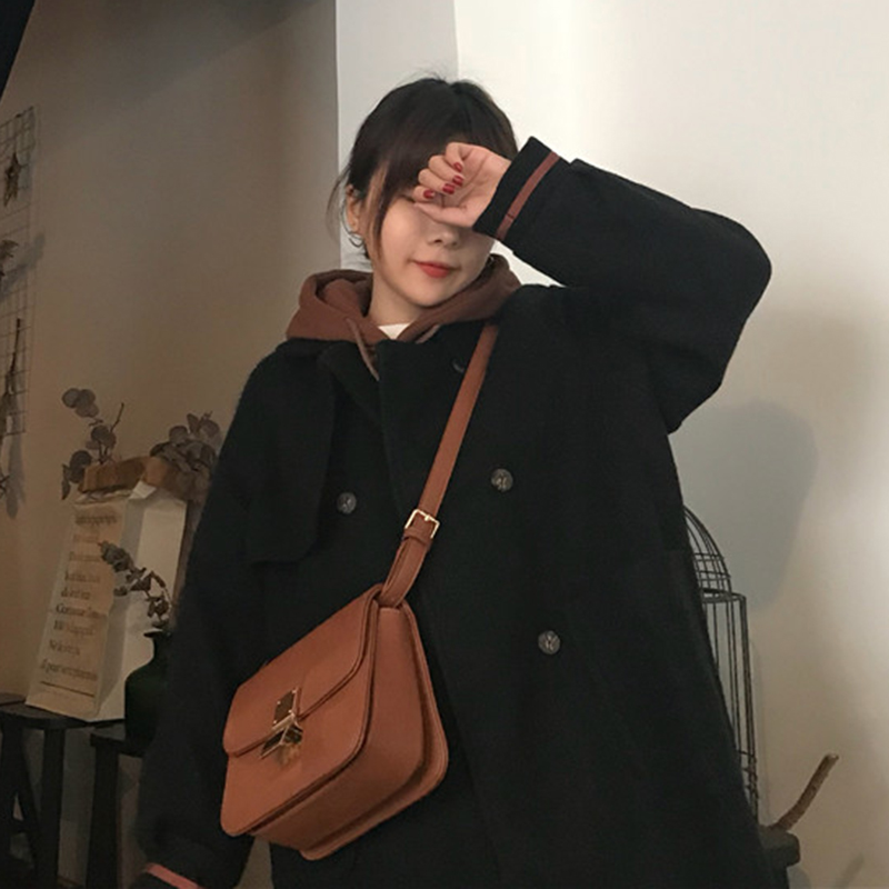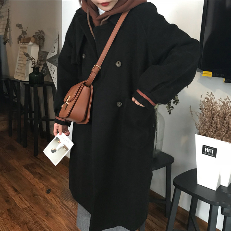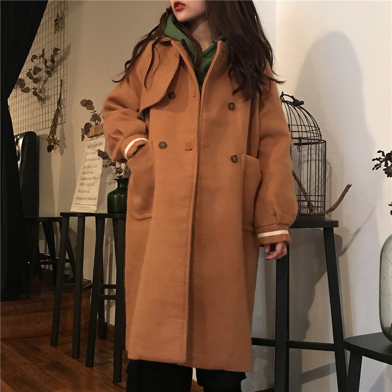 秋冬女裝2018新款復古寬松夾棉毛呢外套學生時尚大衣中長款上衣潮
