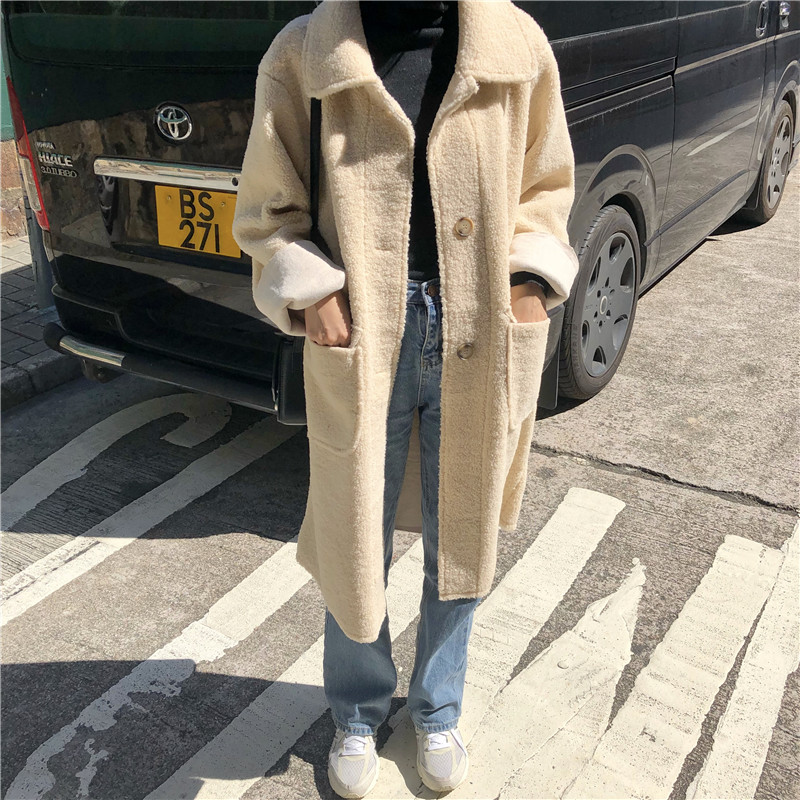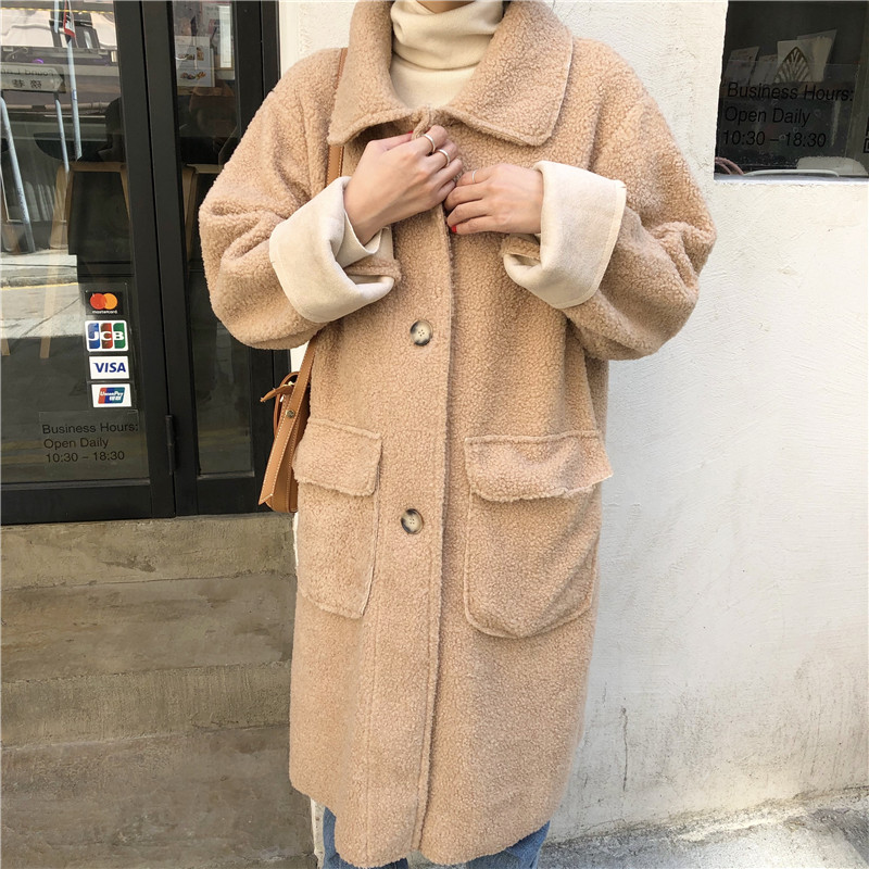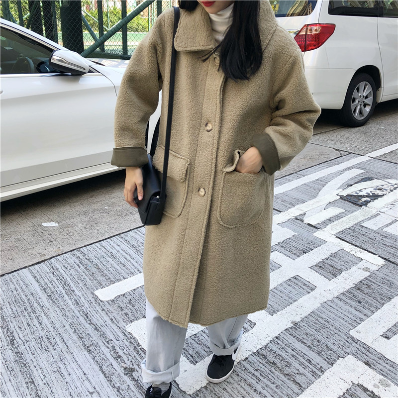 毛呢外套女冬季大衣女新款2018韓版百搭新羊羔絨中長款加厚上衣潮