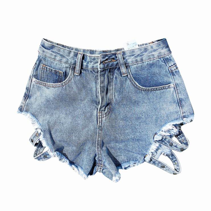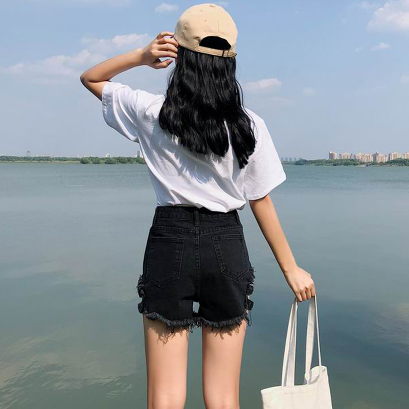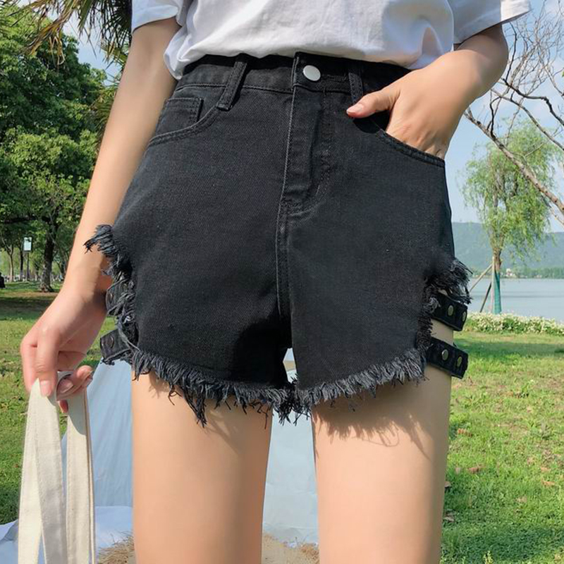 / 短褲女夏新款韓版女裝顯瘦高腰毛邊牛仔熱褲側鏤空寬松休閑闊腿褲