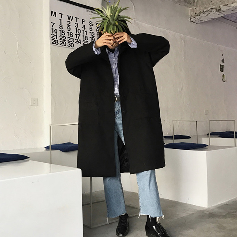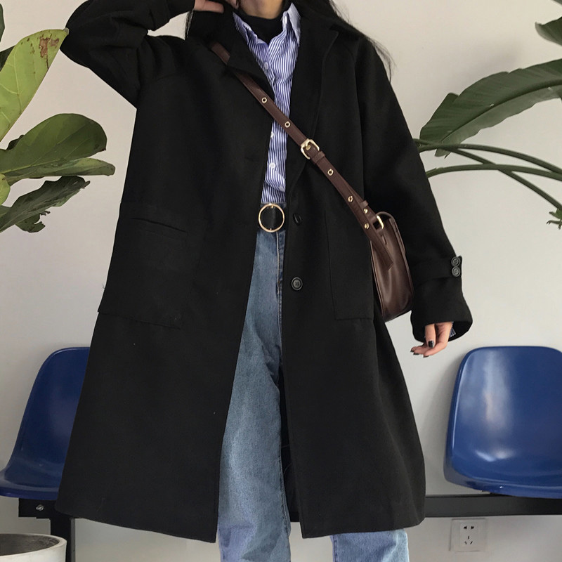 / 時尚毛呢外套秋女2018新款復古翻領黑色呢子大衣學生寬松長袖上衣