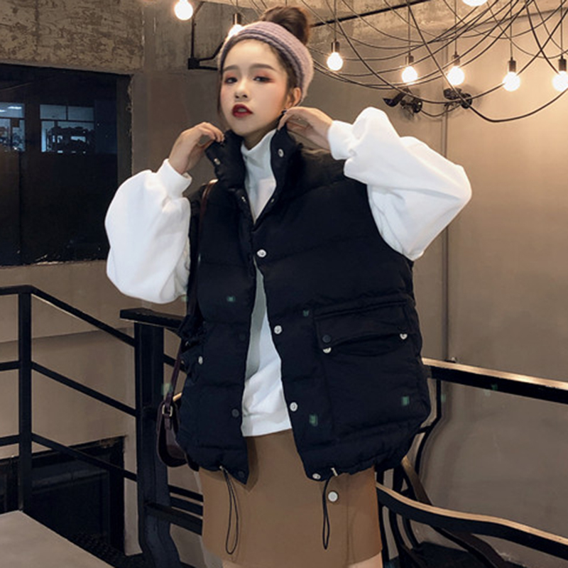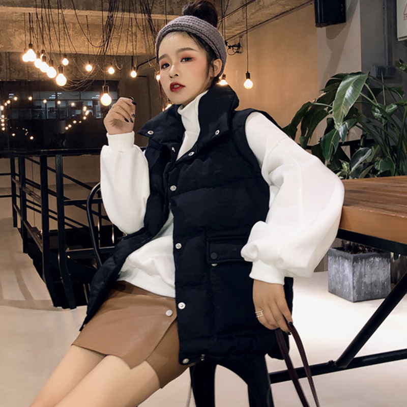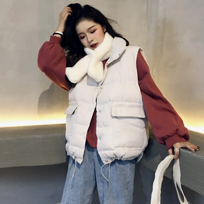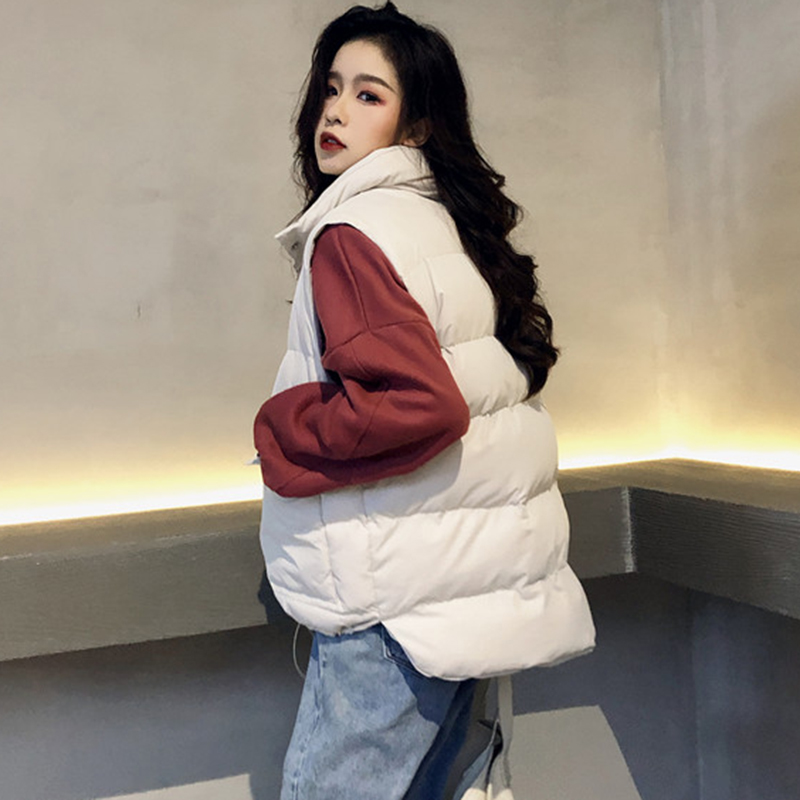 慵懶無袖棉馬甲女秋冬裝2018新款寬松外套時尚白色面包服學生棉襖