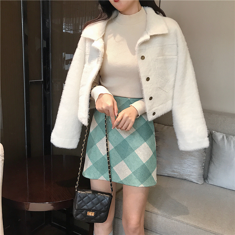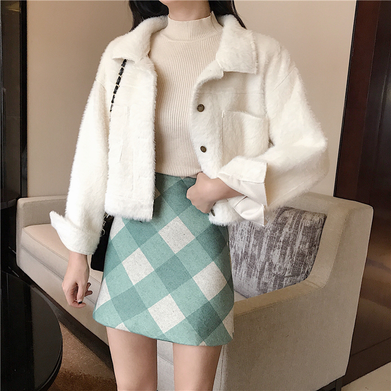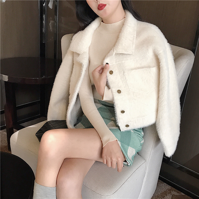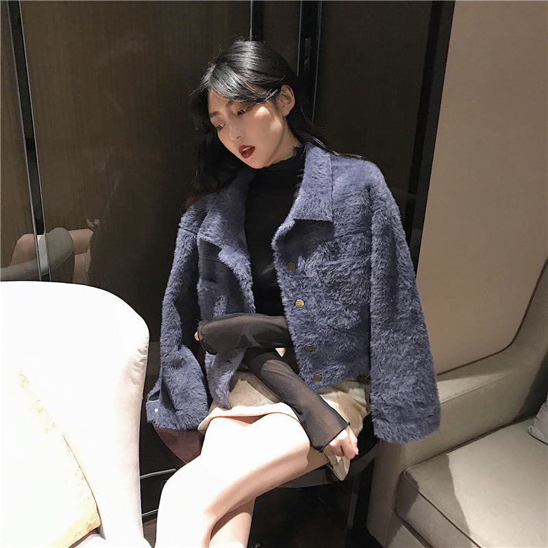 / 港味時尚復古秋冬2018新款修身短款小個子長袖皮毛一體加厚外套女