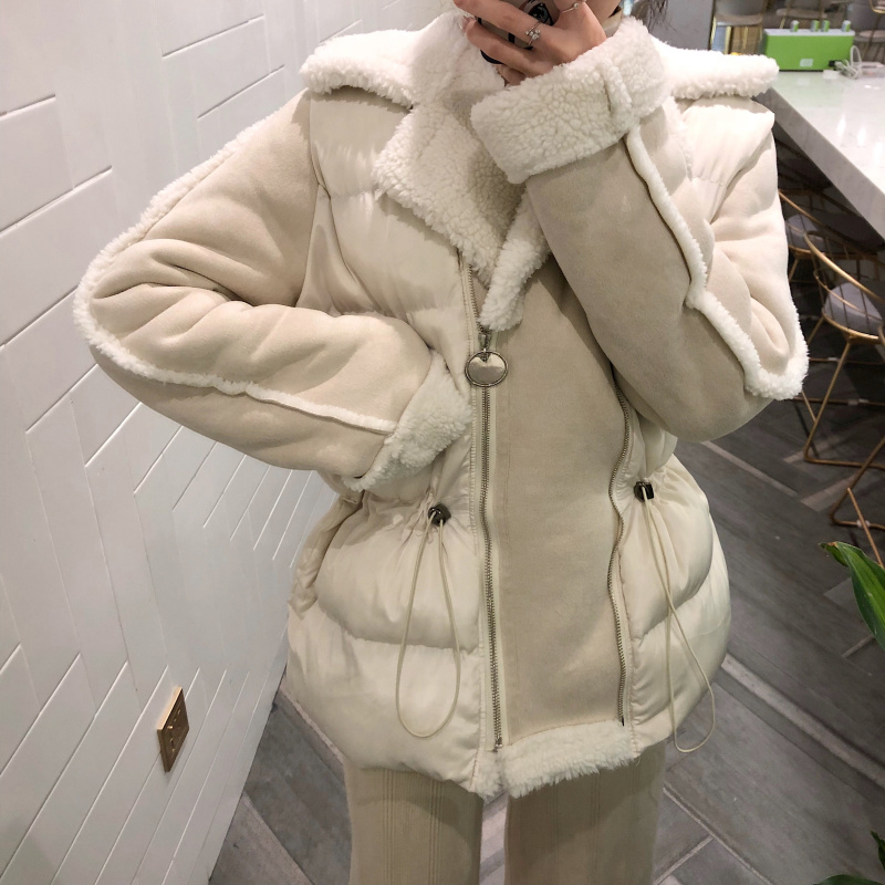 領子跟袖子是一體毛拼接羊羔毛的哈