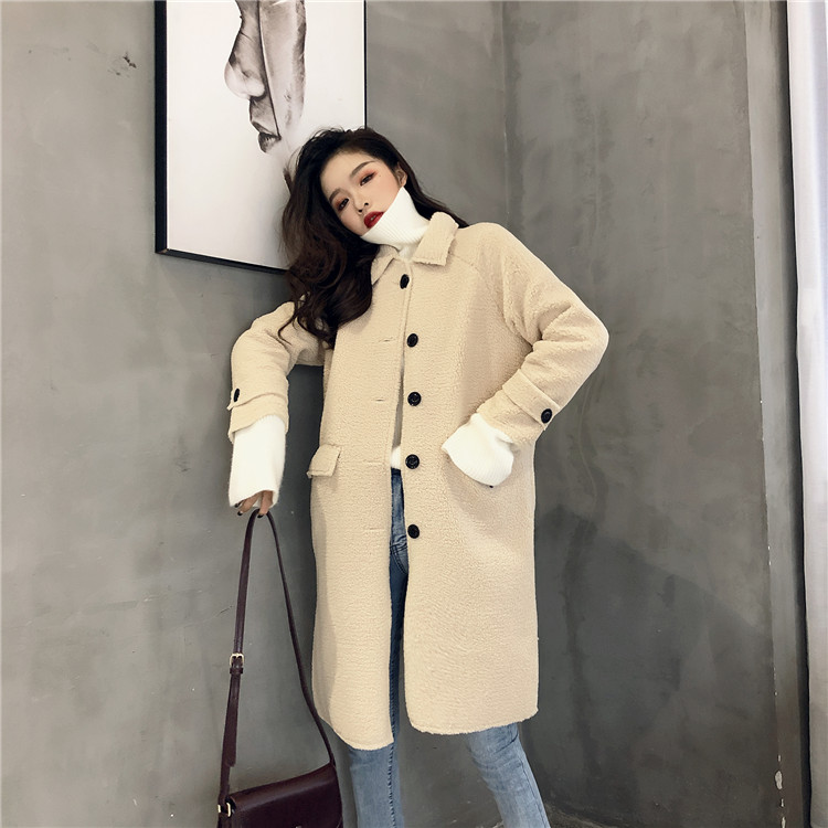 / 復古溫柔慵懶風加厚單排扣立領羊羔毛外套女秋冬2018新款棉衣棉服