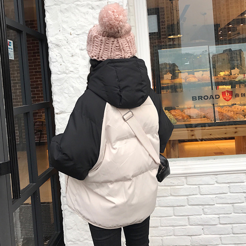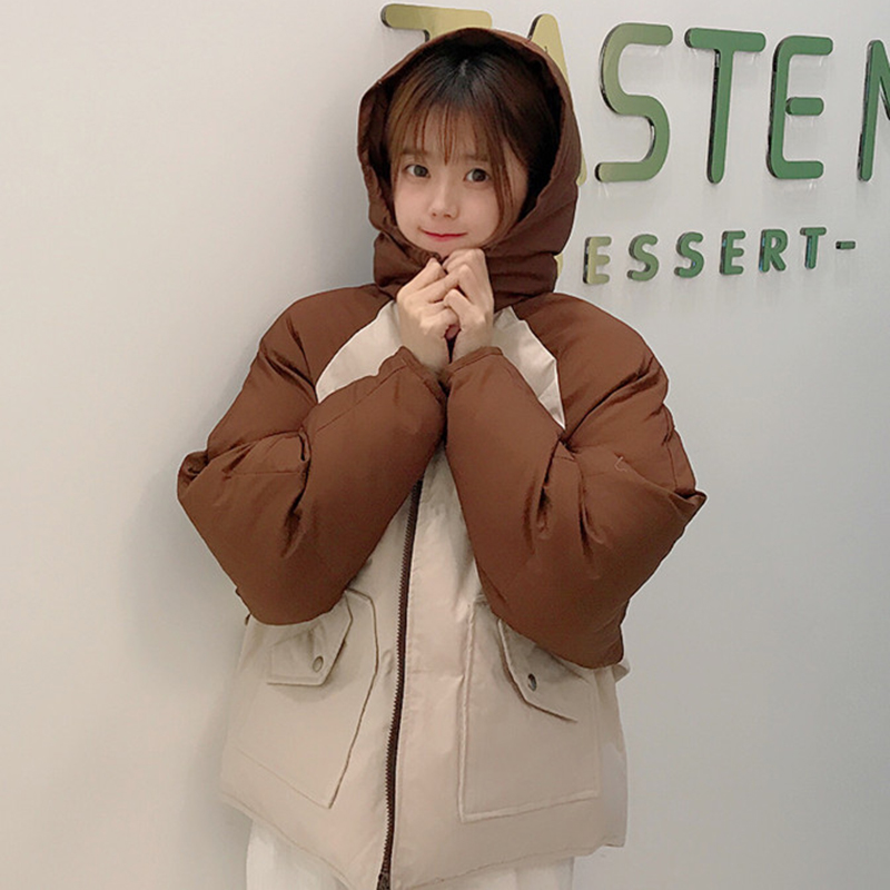 學院風拼色連帽面包服女冬裝2018新款韓版寬松加厚連帽棉衣服外套
