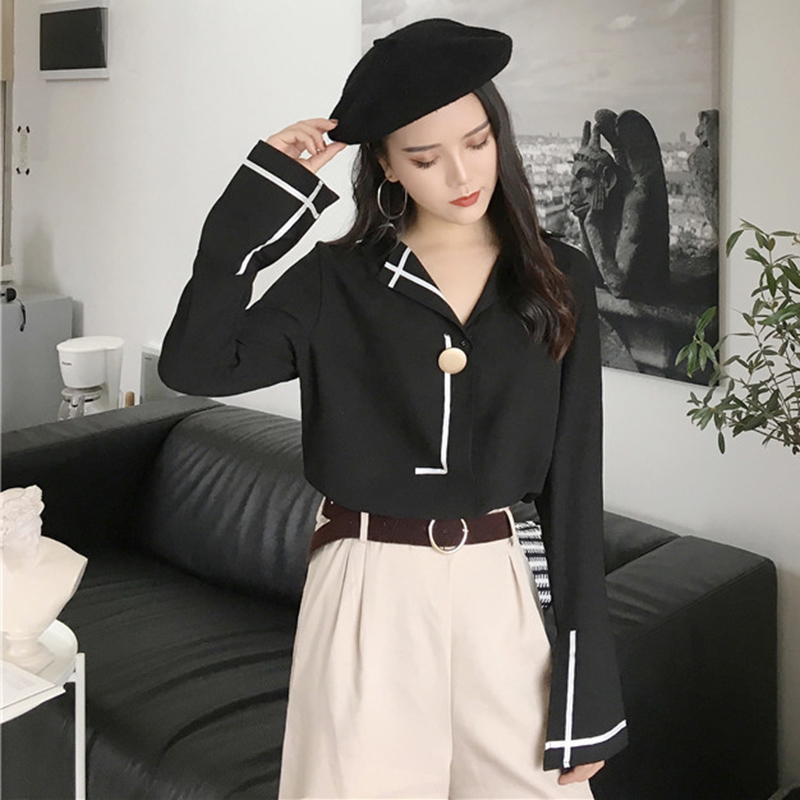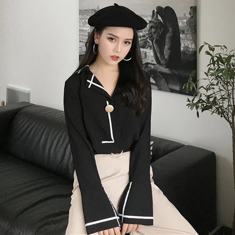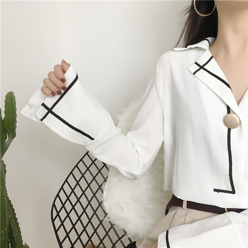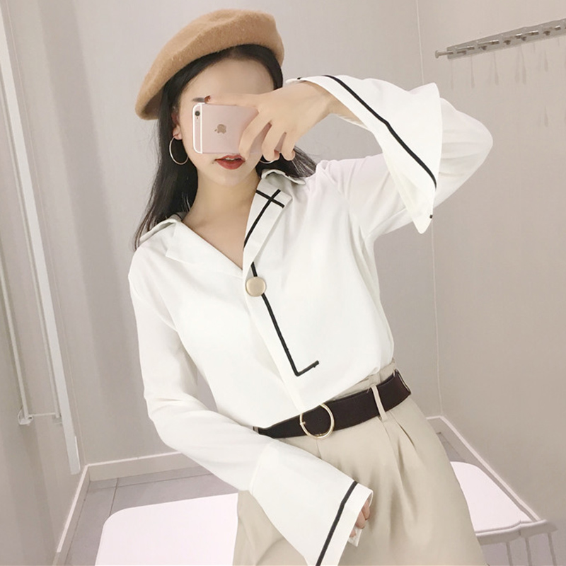 / 白襯衫女2018新款秋裝港味時尚休閑雪紡衫寬松開叉喇叭長袖上衣潮