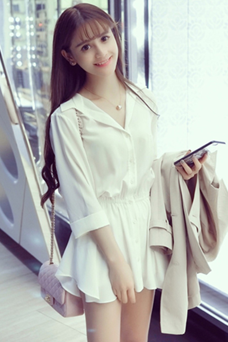 / 2018修身連衣裙女裝夏裙子清新學生雪紡氣質修身顯瘦襯衫A字短裙