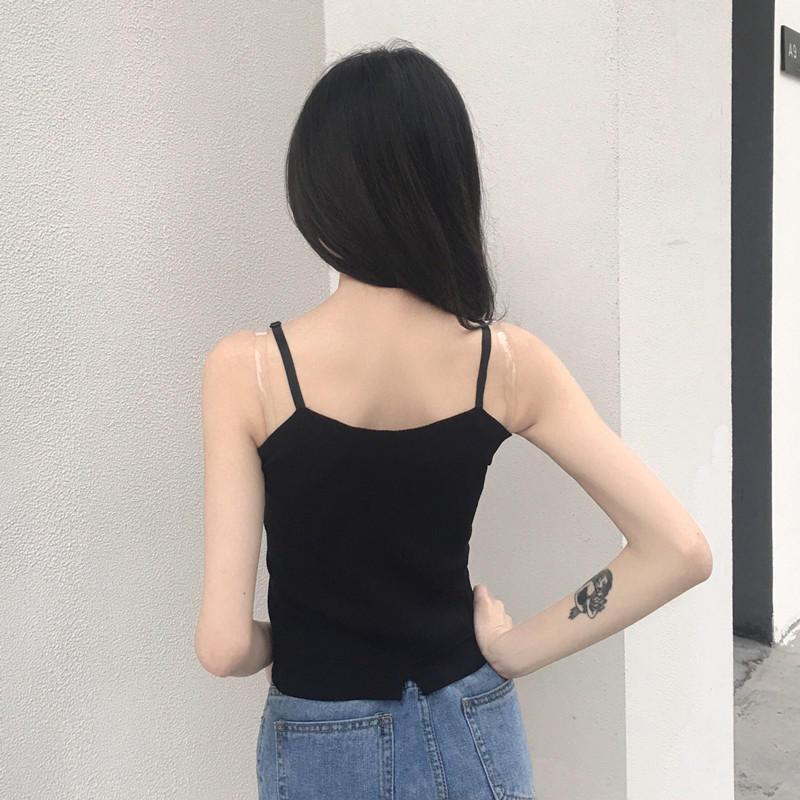 / 春夏新款女裝百搭修身顯瘦短款露臍拉鏈學生針織打底吊帶小背心女