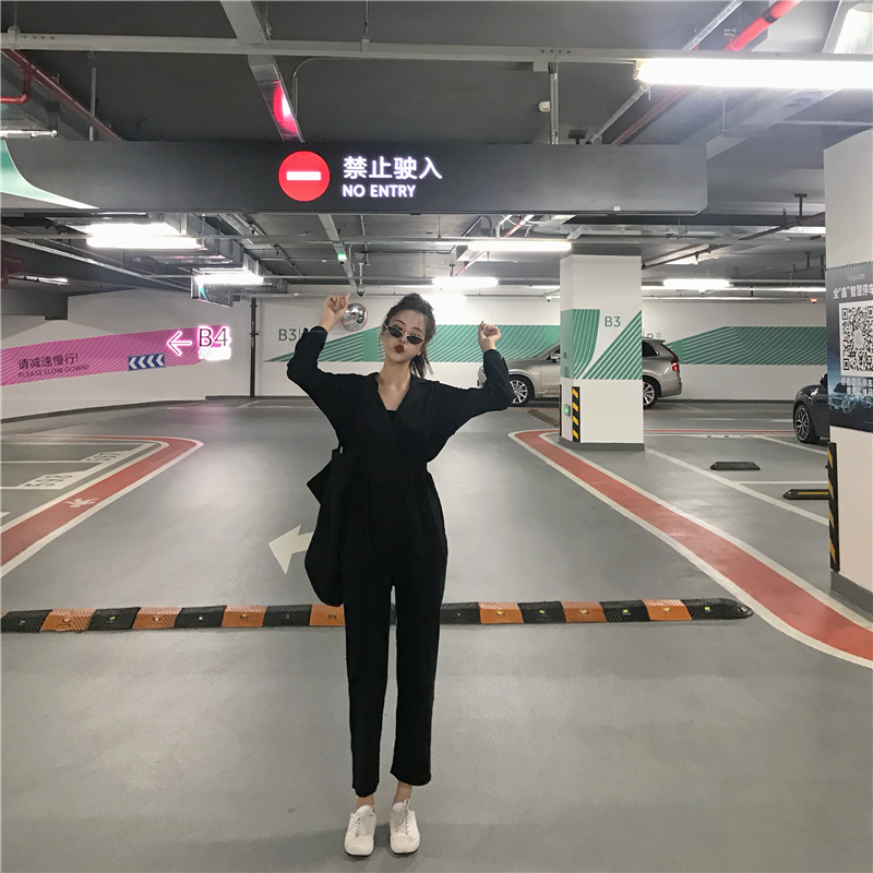 / 褲子女學生寬松韓版ulzzang百搭港風絨料氣質高腰顯瘦直筒連體褲