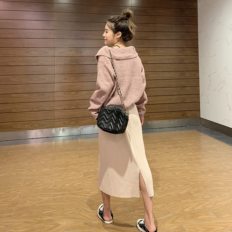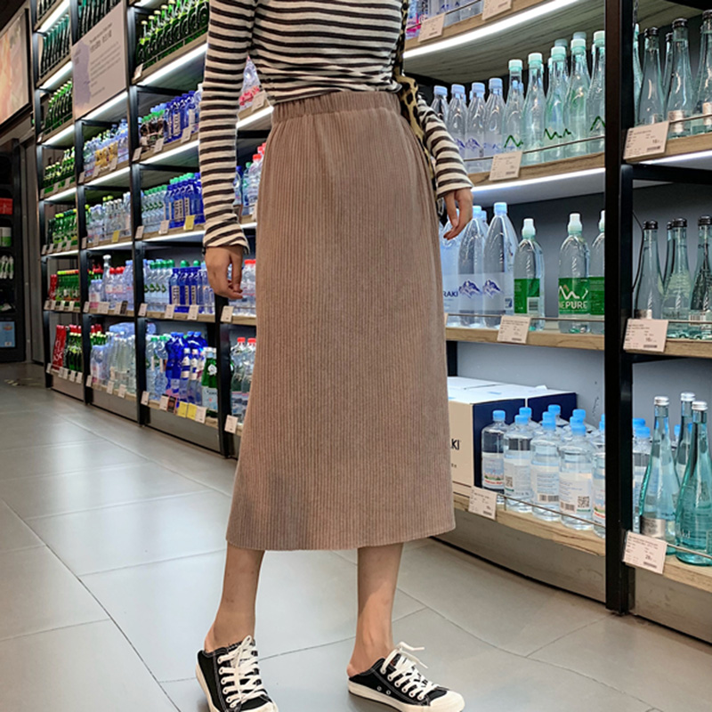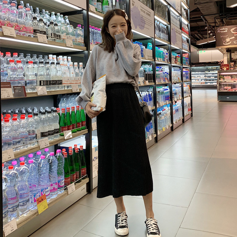 / 高腰顯瘦燈芯絨中長裙秋裝女2018新款學院風chic休閑黑色半身裙子