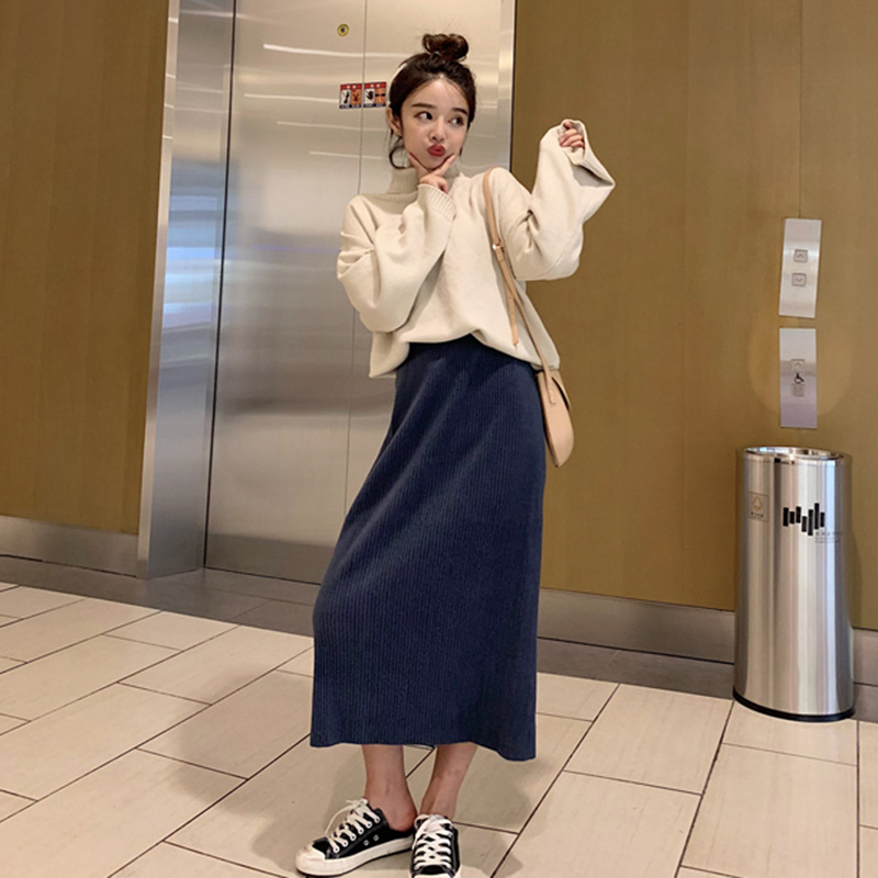高腰顯瘦燈芯絨中長裙秋裝女2018新款學院風chic休閑黑色半身裙子