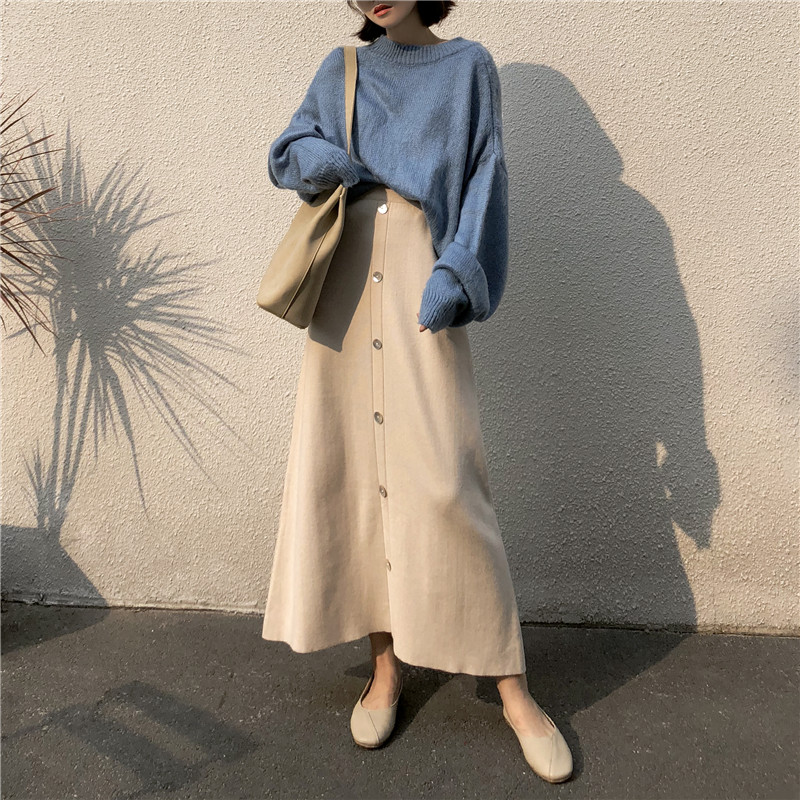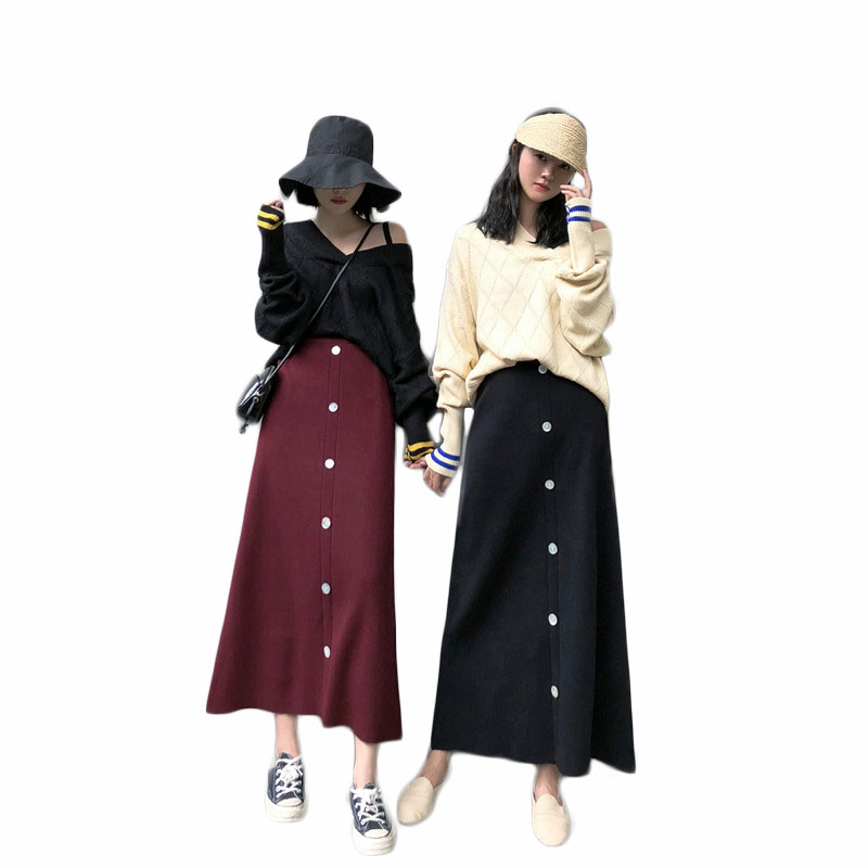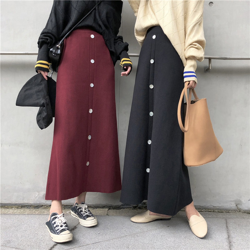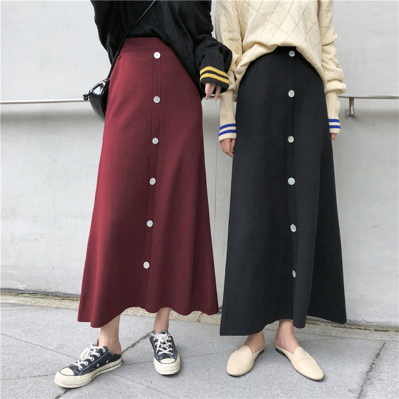 / 港味裙子女秋冬2018新款顯瘦百搭韓版高腰針織半身裙中長款A字裙